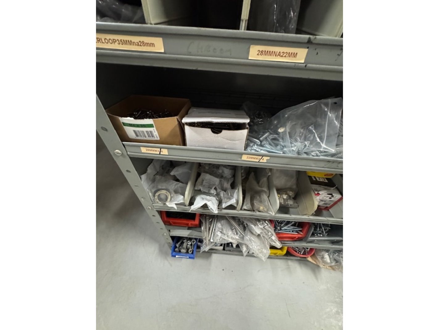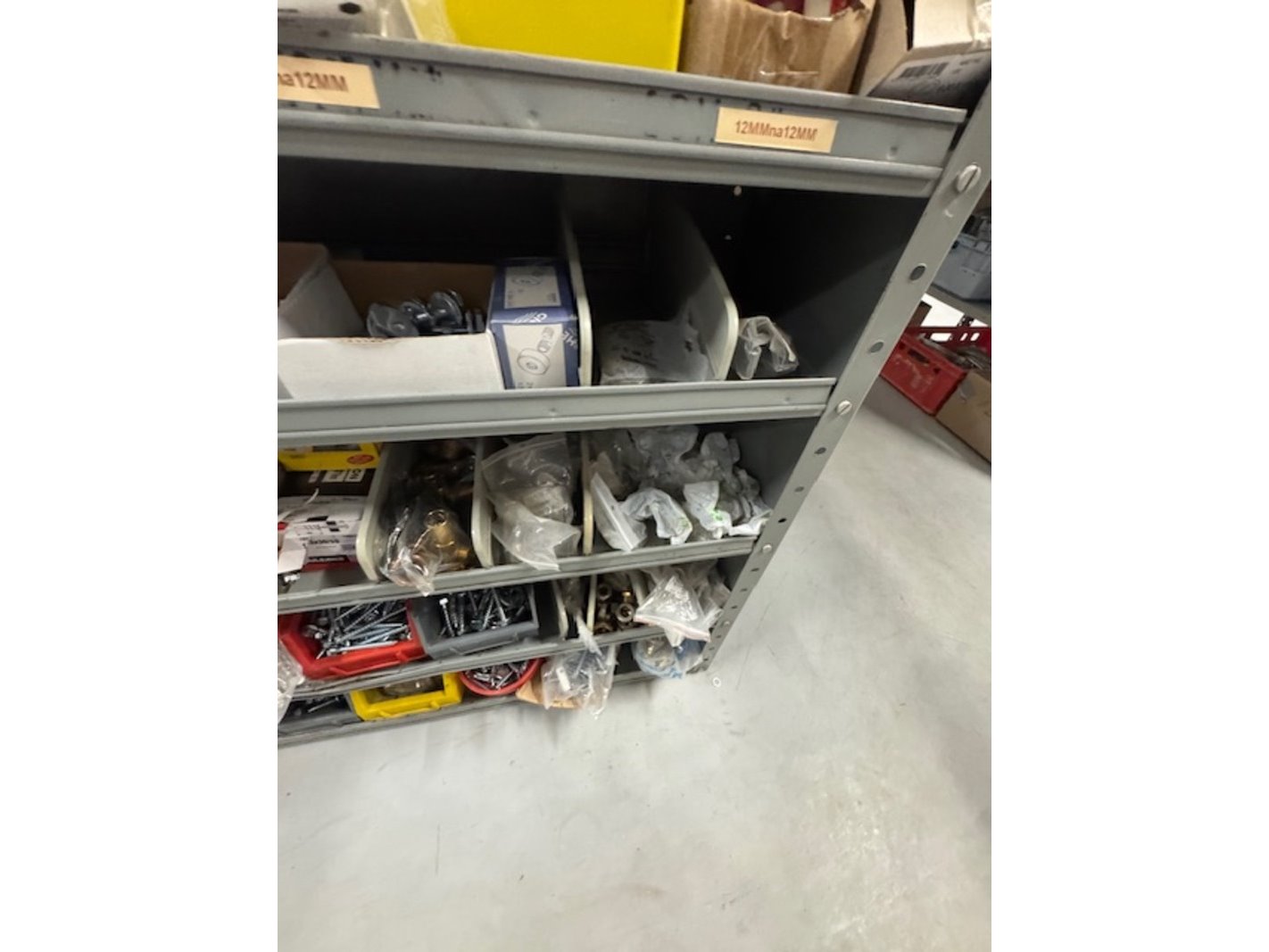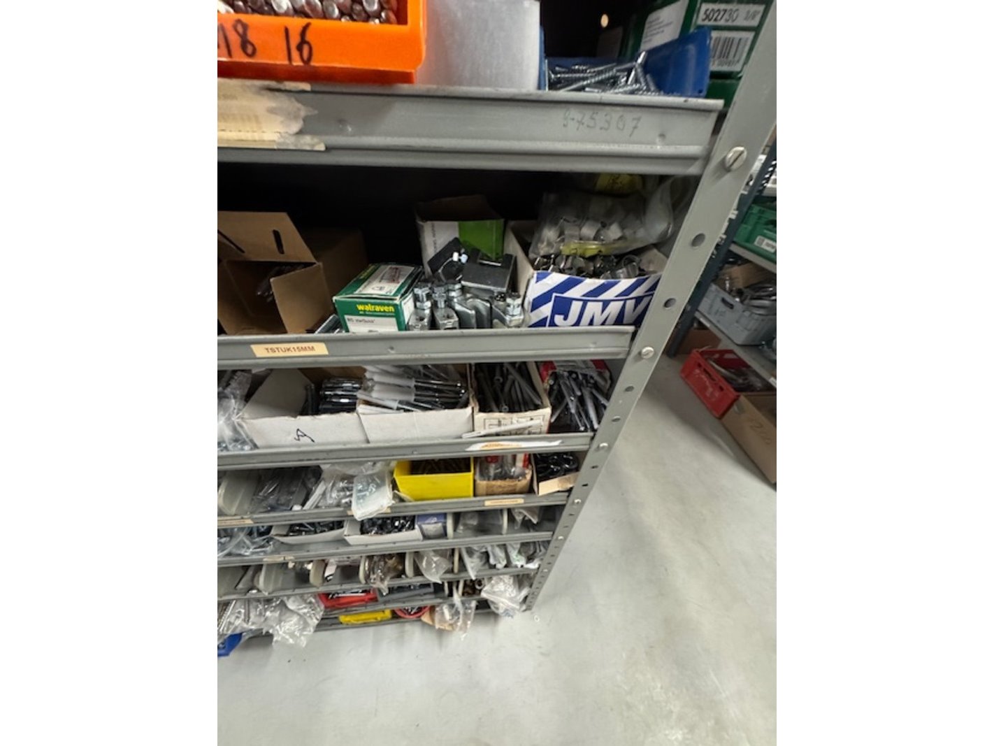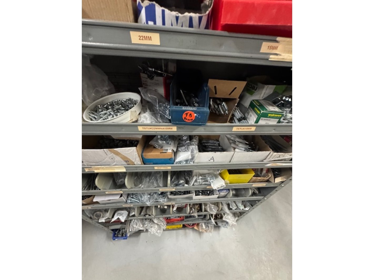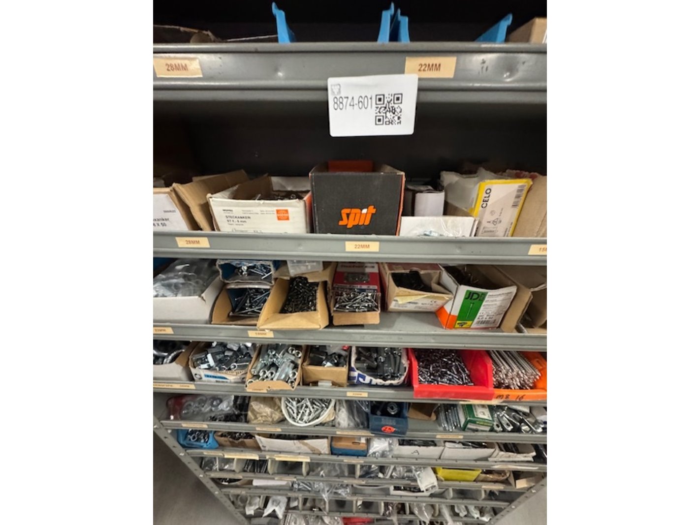Product: Voorraadkast met ijzerwaren Afmeting: bxdxh ca. 100x30x199cm Specificaties: bouten, moeren, schroeven etc.