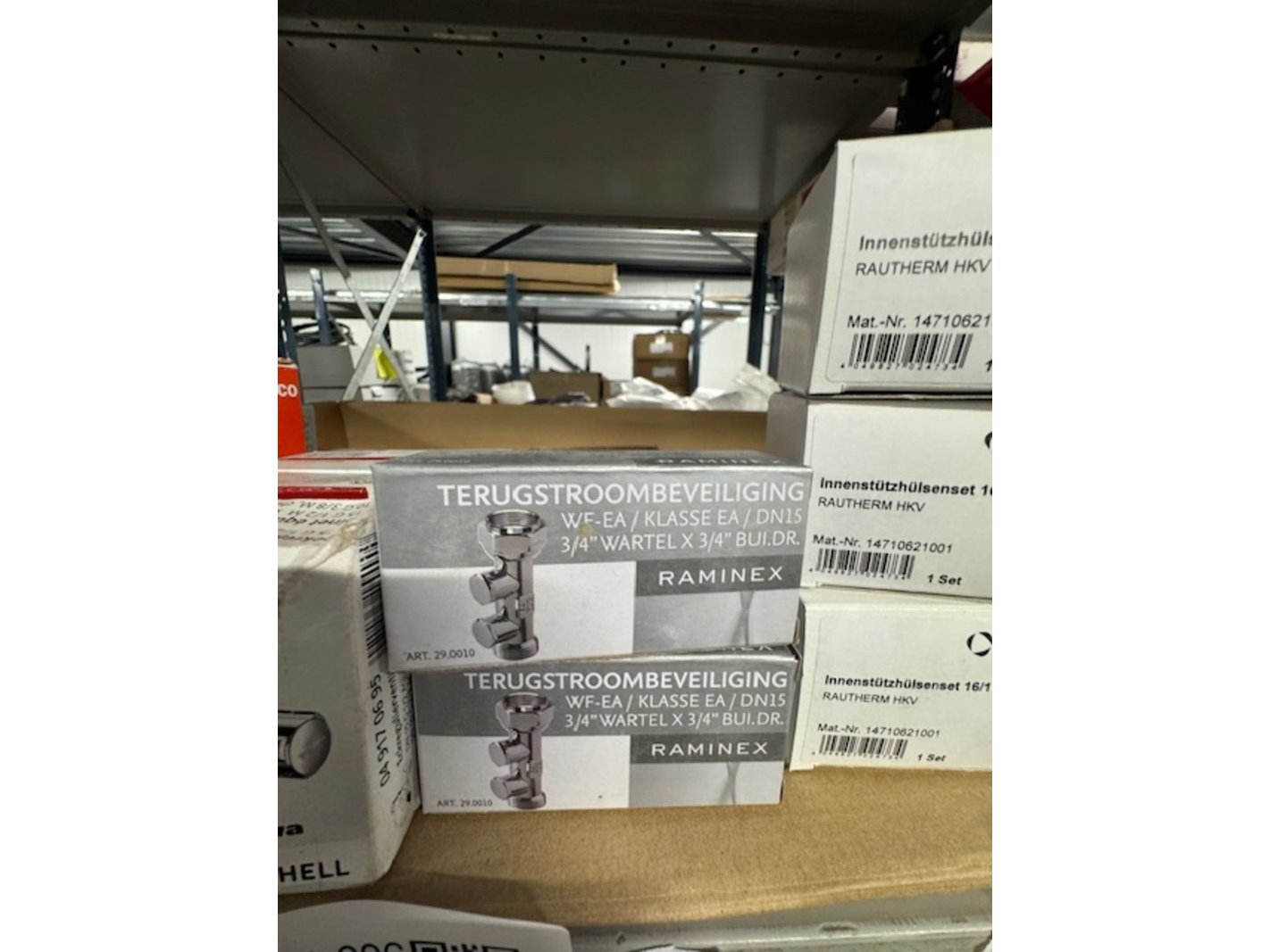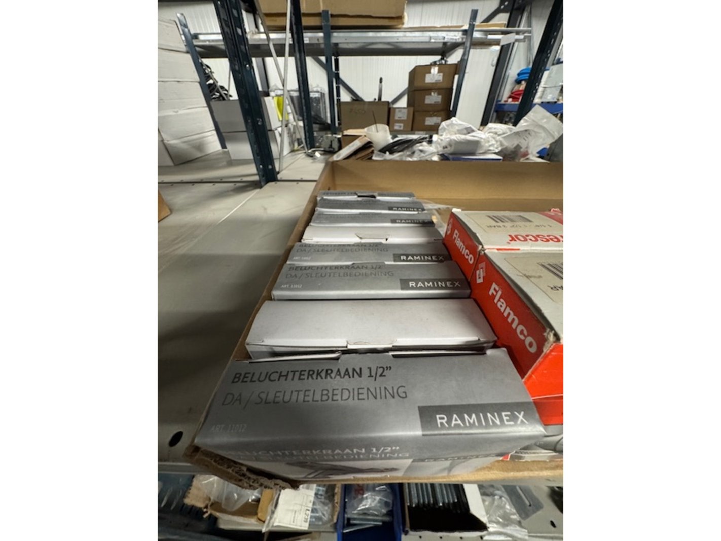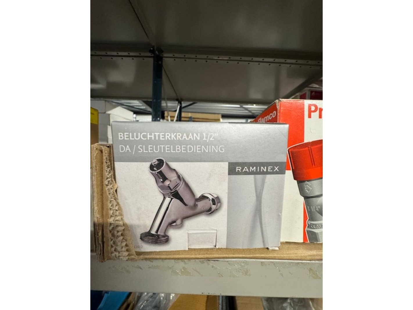 Product: Diverse kraan Specificaties: o.a.: 9x raminex beluchterkraan, 2x prescor 1/4", 4x hoekregelkraan Schell, 2x raminex terugstroombeveiliging,
