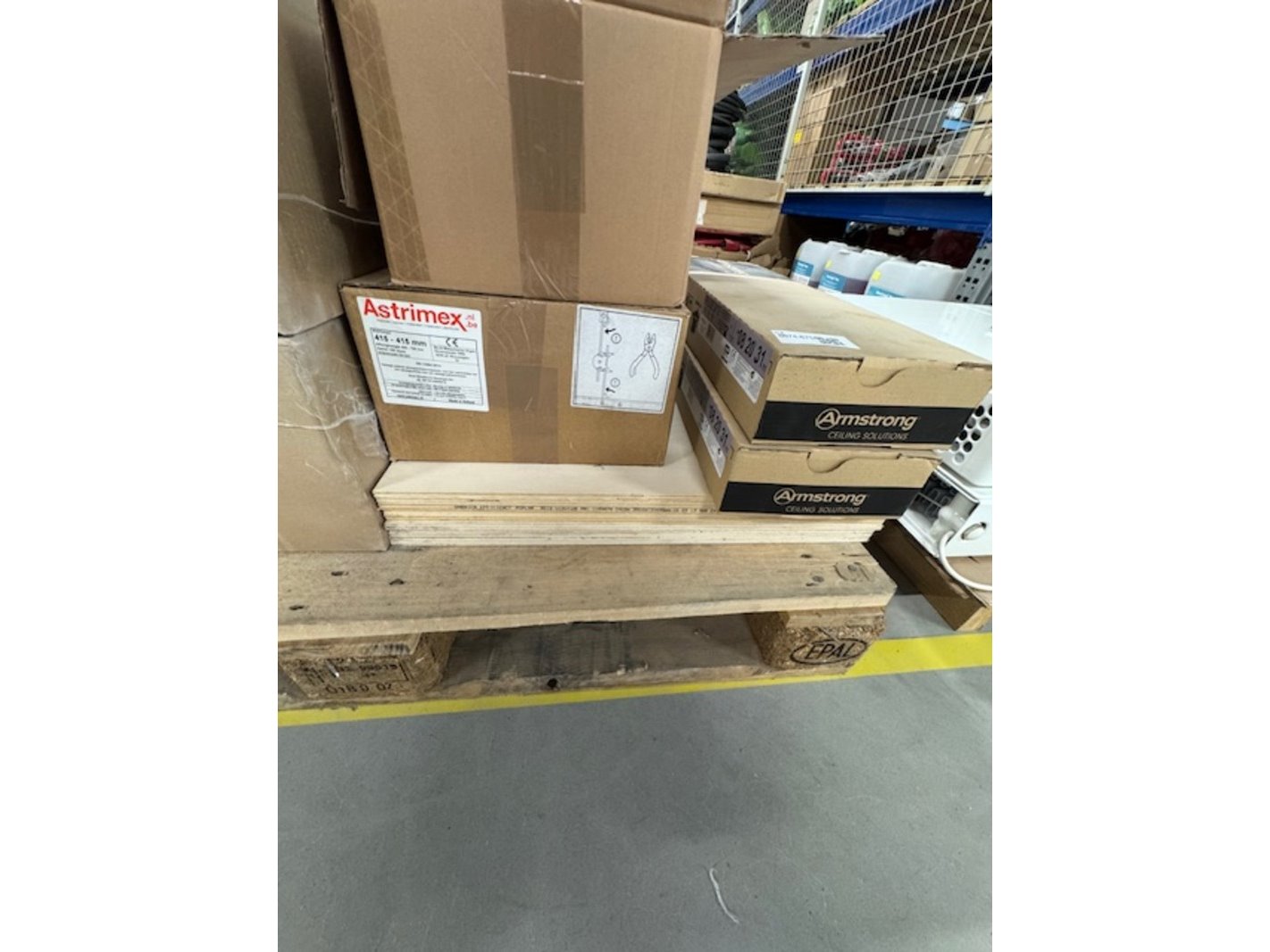 Product: Plafondplaten en toebehoren Specificaties: 2x doos dragers 60cm, 2x astrimex beugels en diverse spotplate triplex