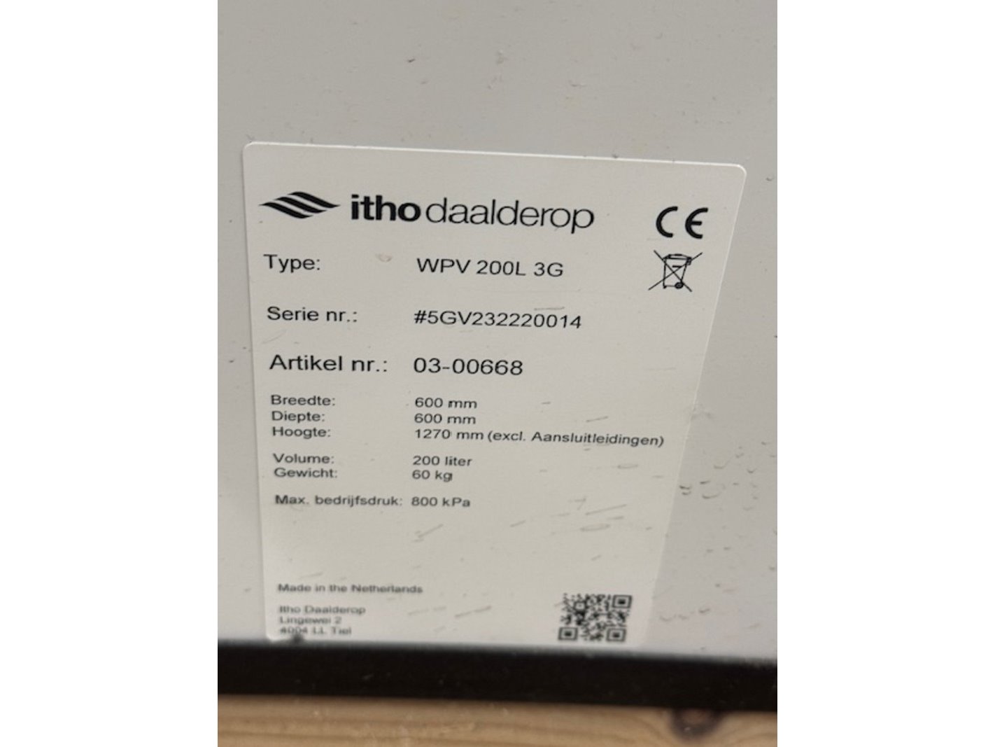 Voorraadvat voor warmtepomp, wpv 200l 3g