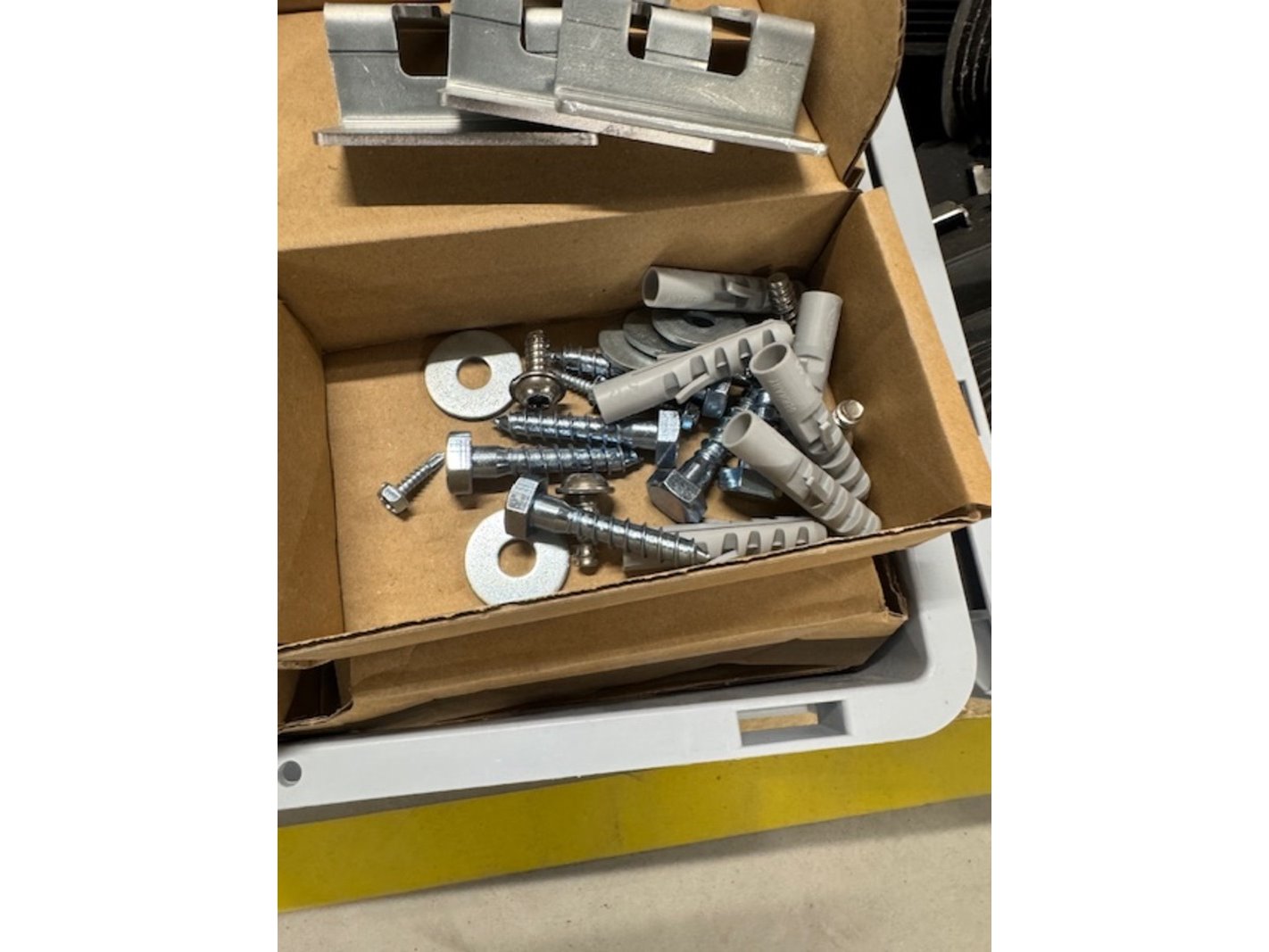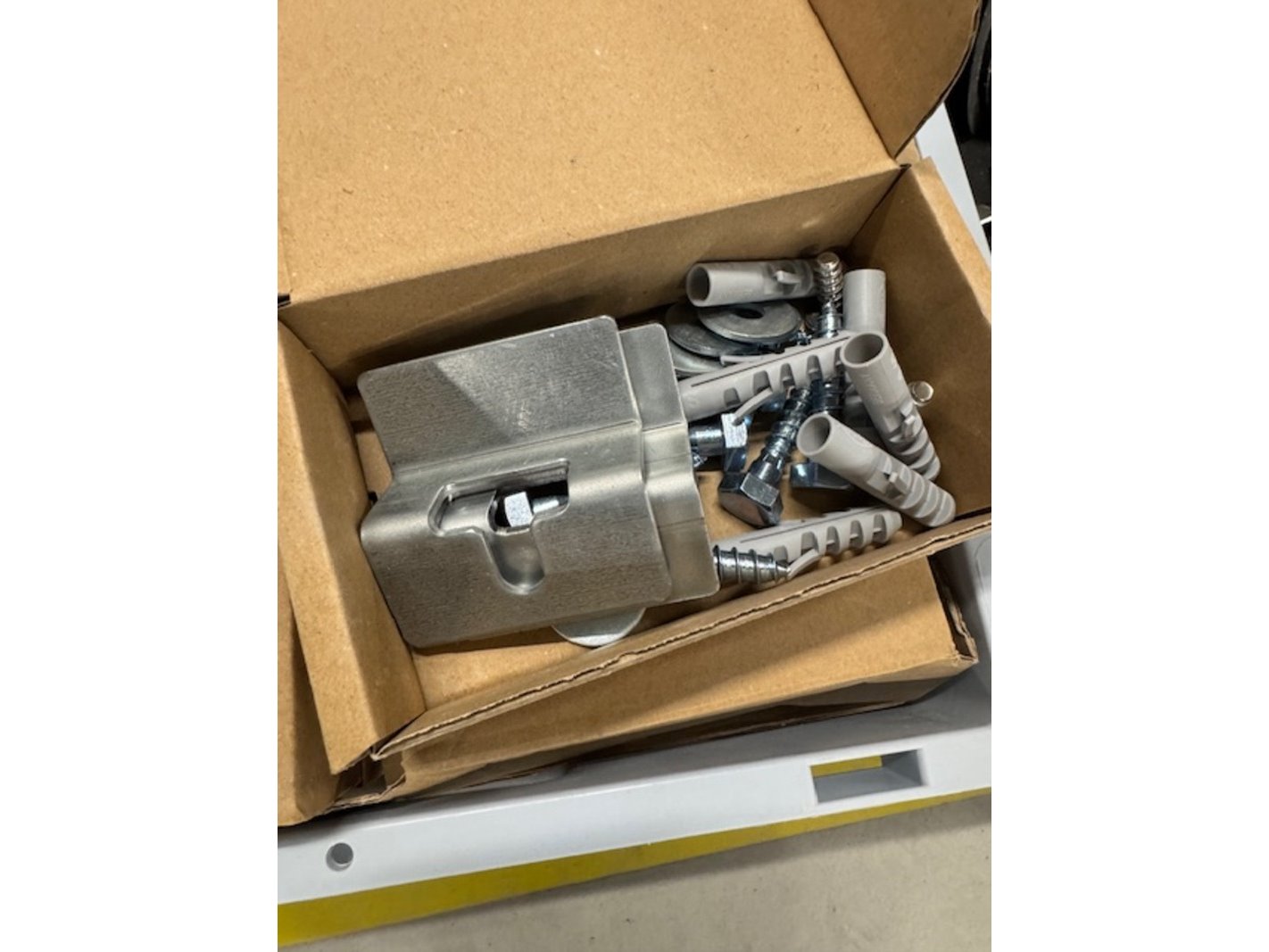 Product: Bevestigingsmateriaal Materiaal: metaal Specificaties: bestaande uit pluggen, bouten en ophangbeugels