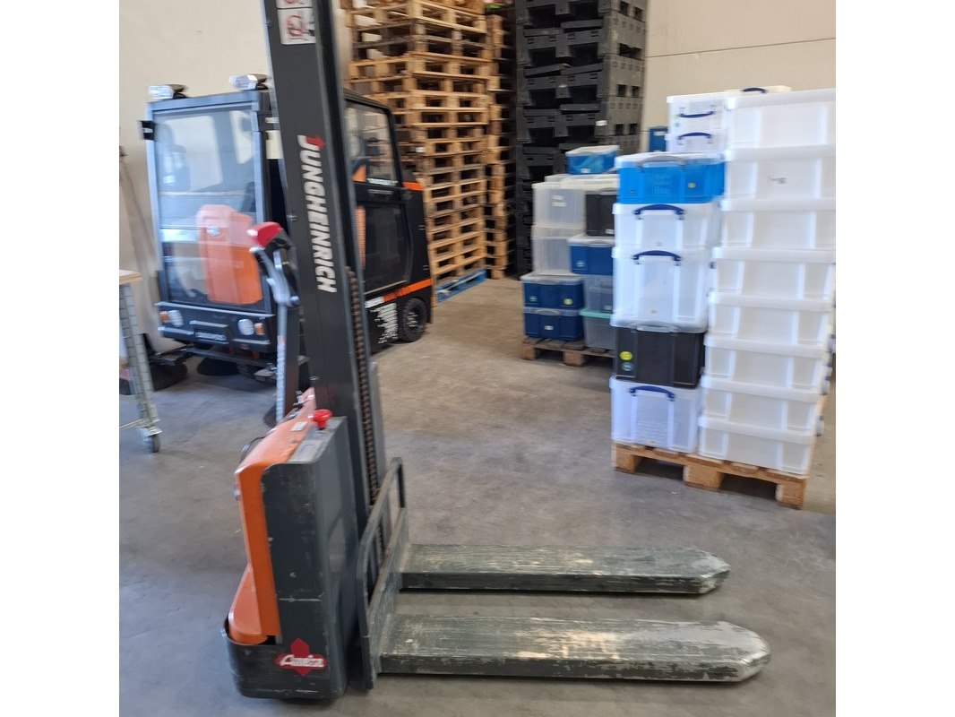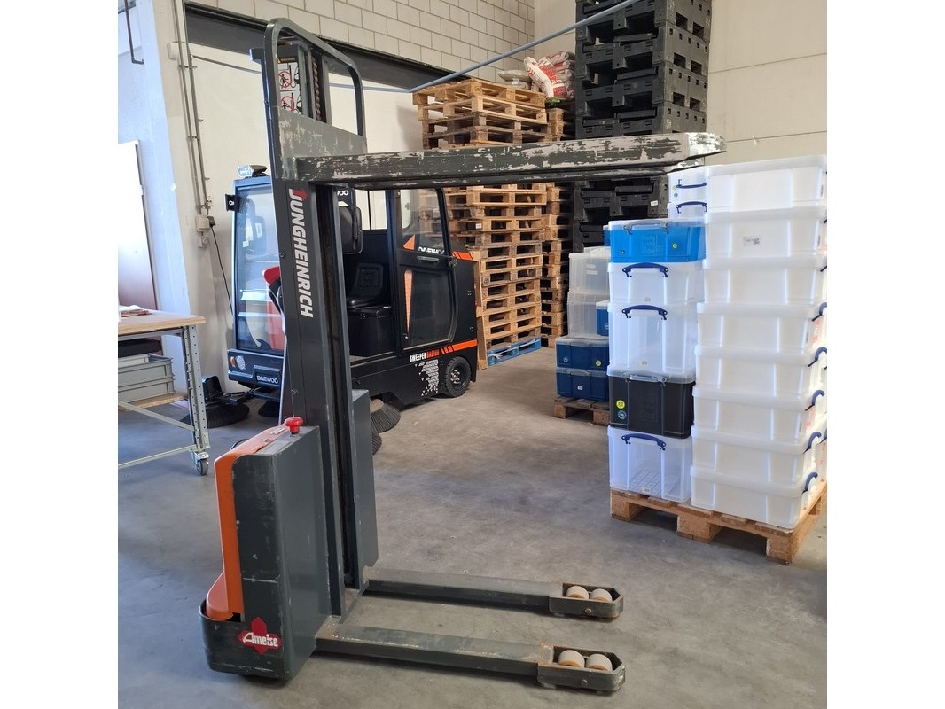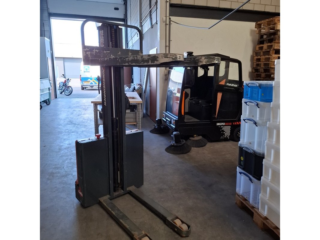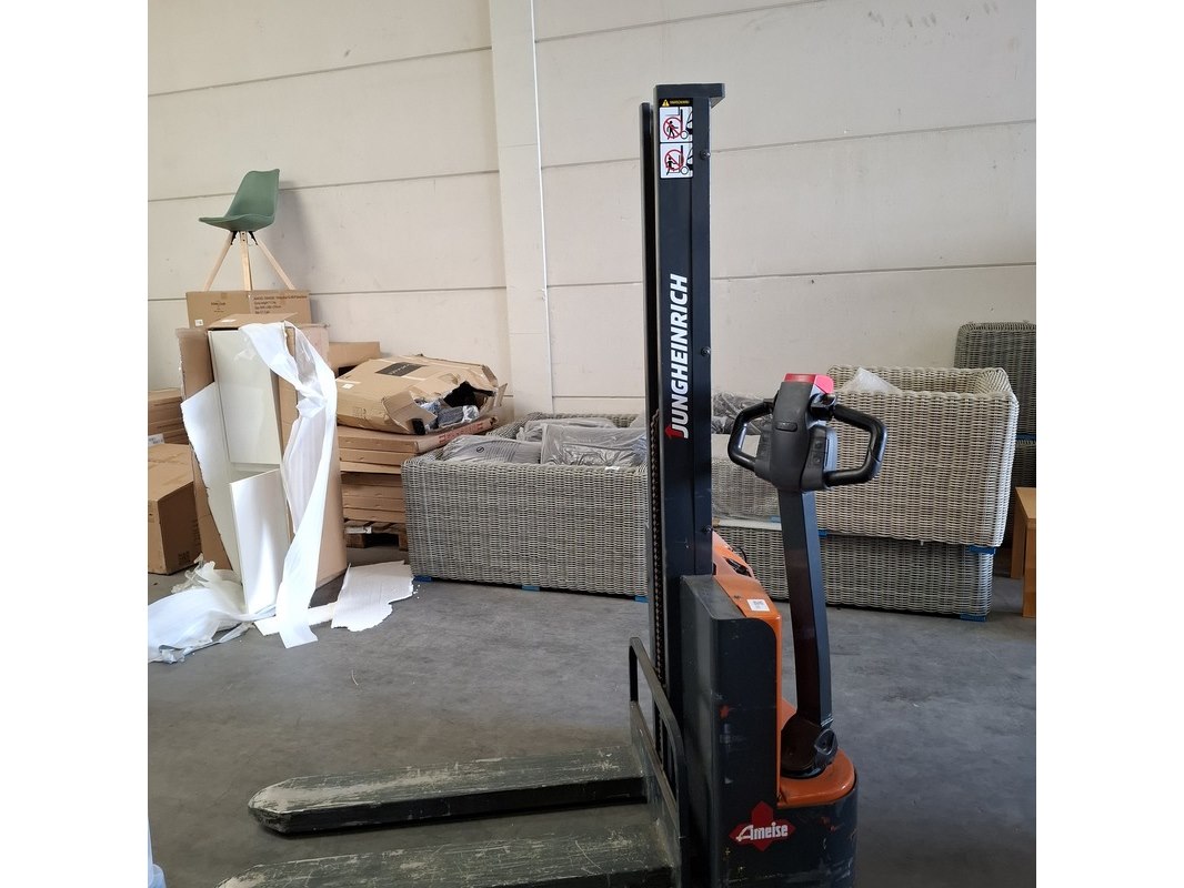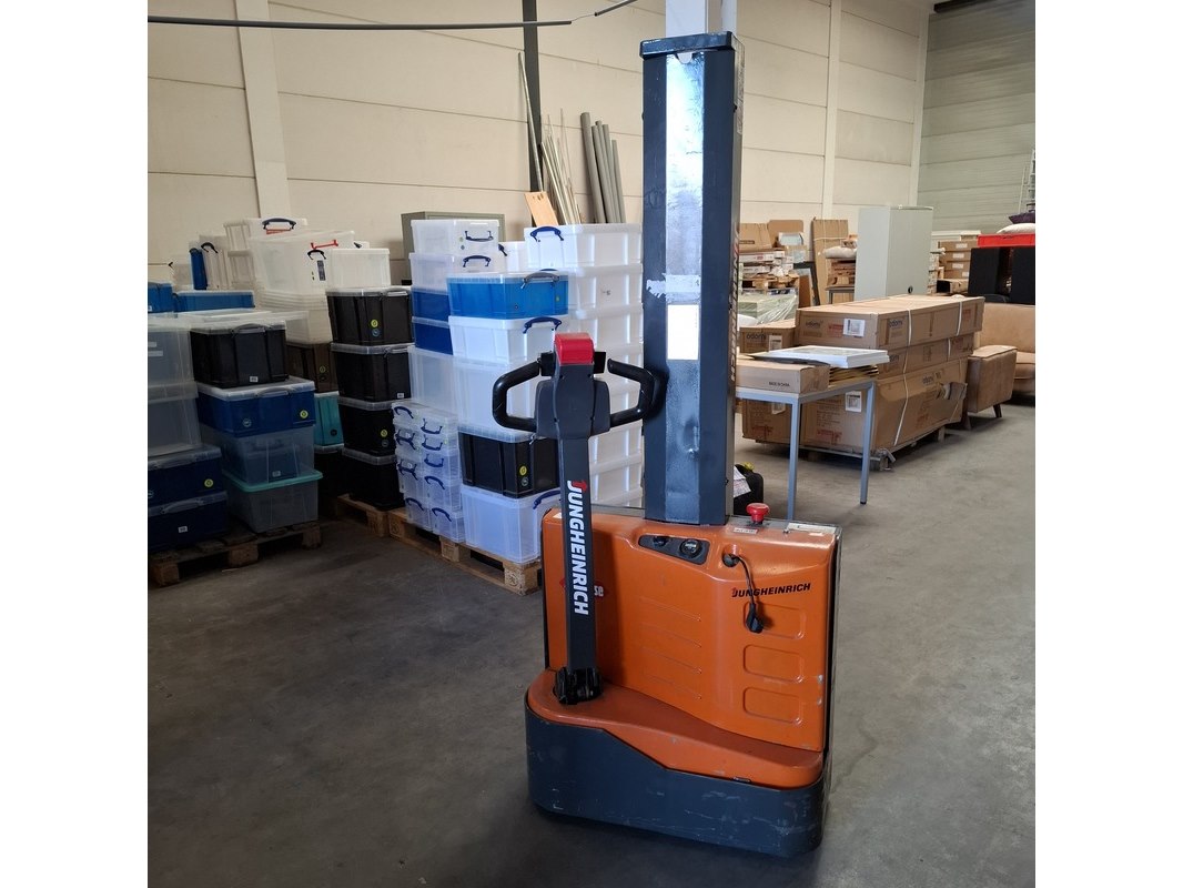 Merk: Jungheinrich Product: Elektrische stapelaar BouwJaar: 2014 Specificaties: max 1000 kilo doorrij hoogte ca. 194 cm max hefhoogte ca. 160cm afgelezen urenstand 2199