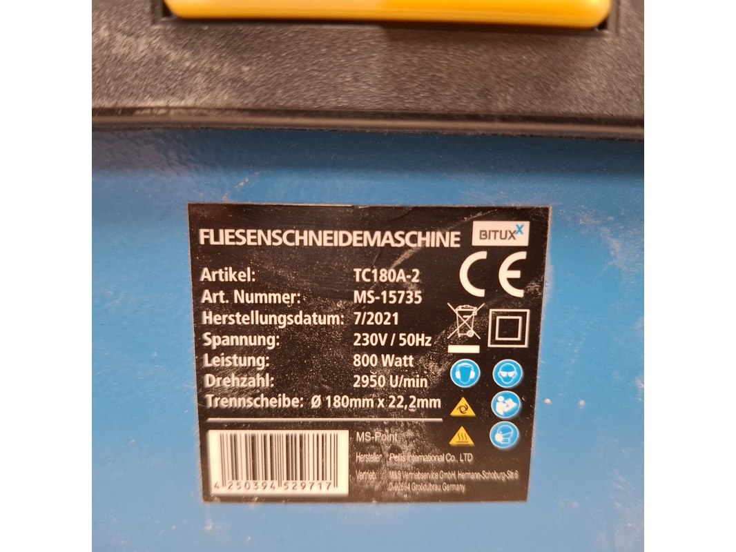 Merk: Bitux Product: Tegelzaagmachine BouwJaar: 2021 Specificaties: 230V, 800W, max 180mm
