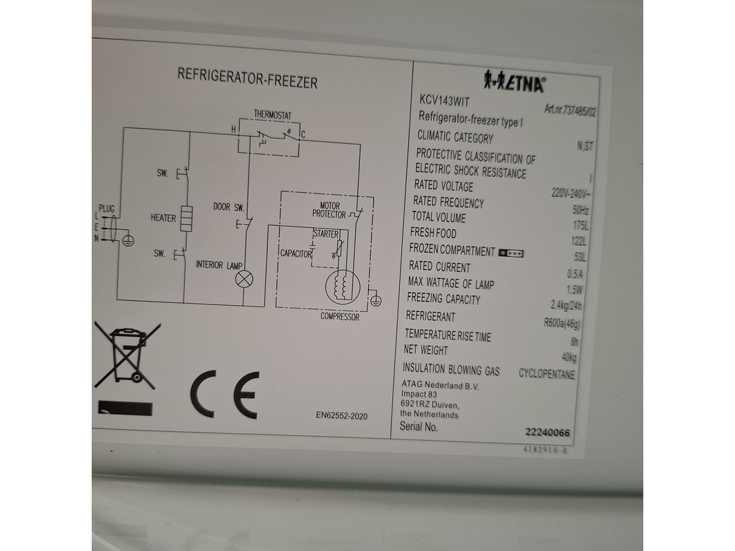 Merk: Etna Product: Koel-vriescombinatie Specificaties: inclusief inductiekookplaat en strijkplank