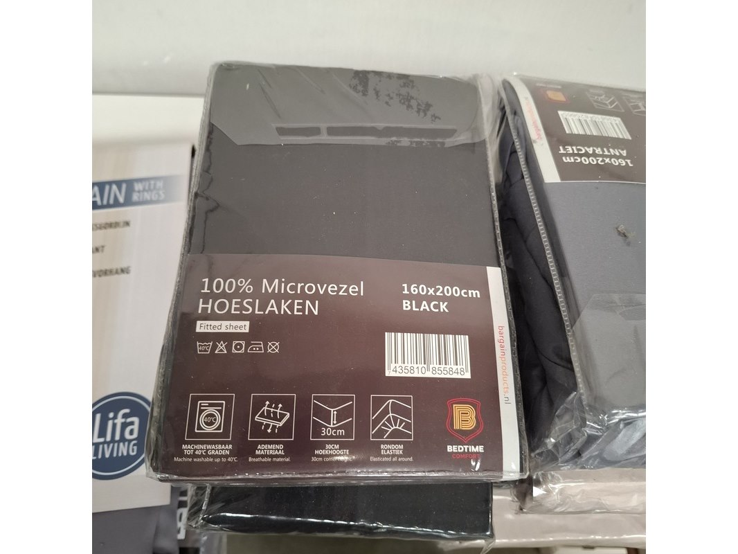Product: Partij diversen Specificaties: bestaande uit o.a.: diverse hoeslakens, verduisteringsgordijnen