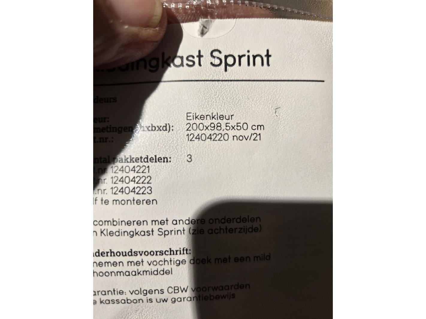 Product: Kledingkast Afmeting: hoogte ca. 187cm