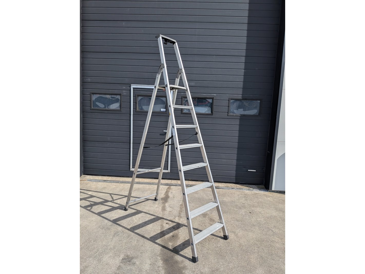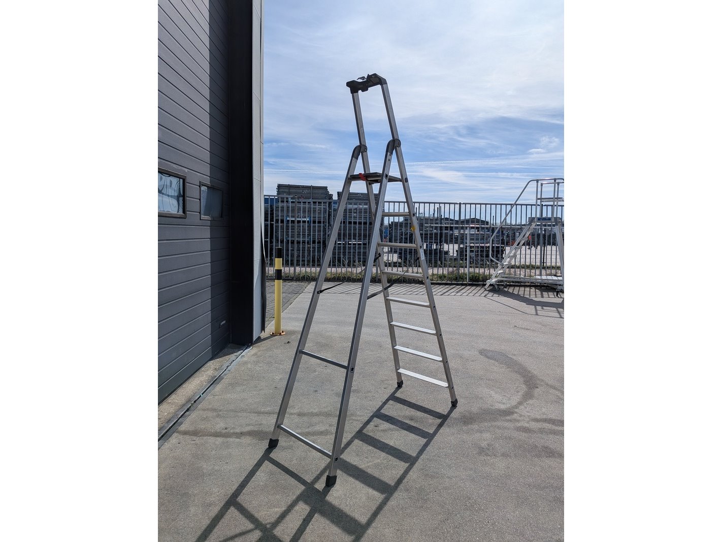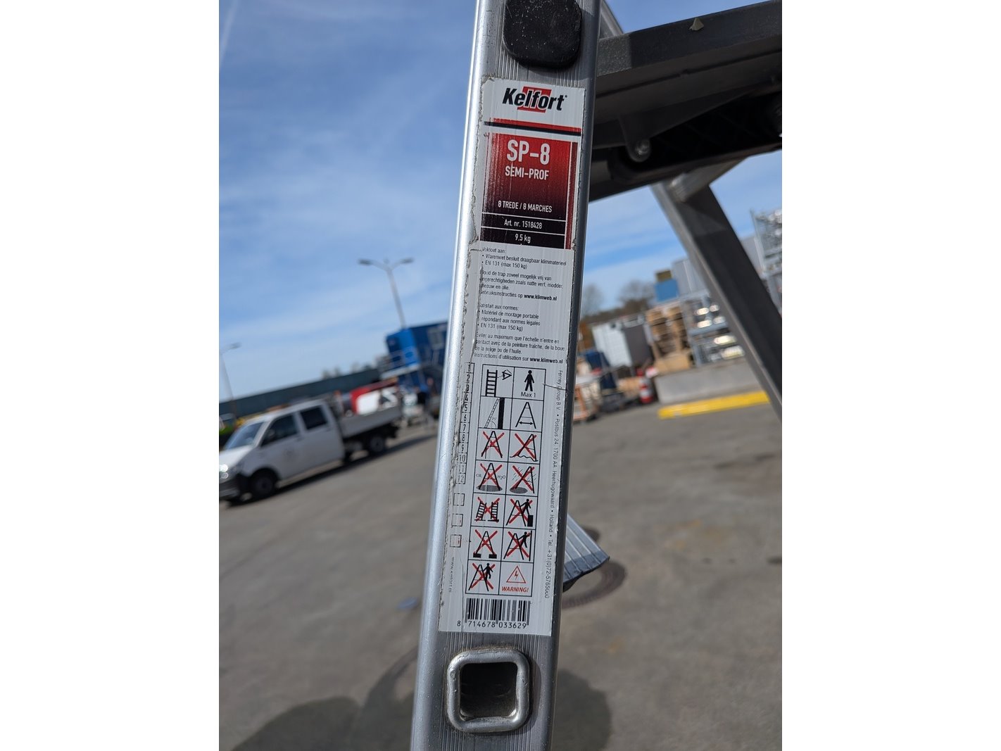 Merk: Kelfort Product: Werktrap 7-treeds met bordes Conditie: gebruikt