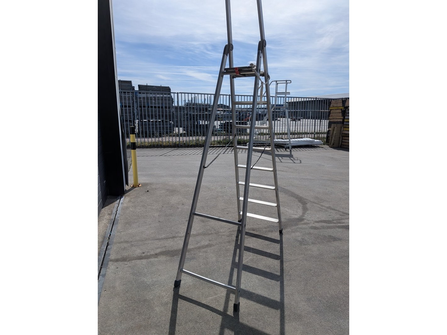 Product: Werktrap 7-treeds met bordes Conditie: gebruikt
