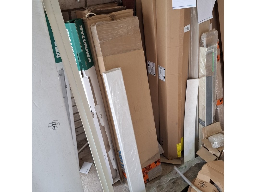 Product: Partij diversen Specificaties: bestaande uit o.a.: diverse lampen, kabelgoten, noodverlichting, led tl lampen, diverse armaturen, etc.
