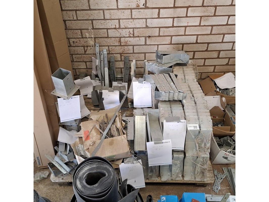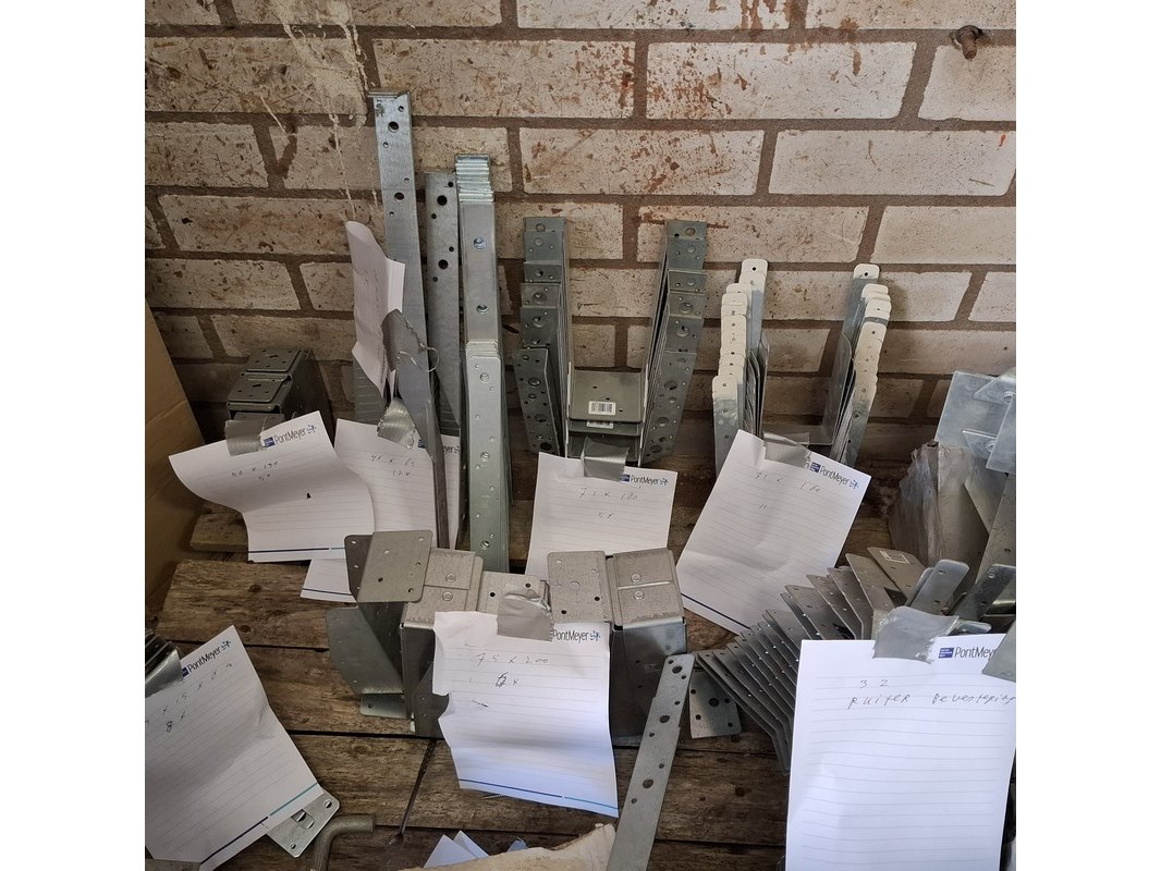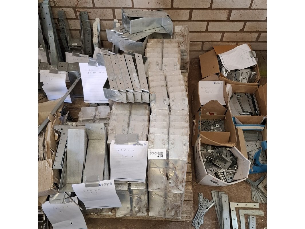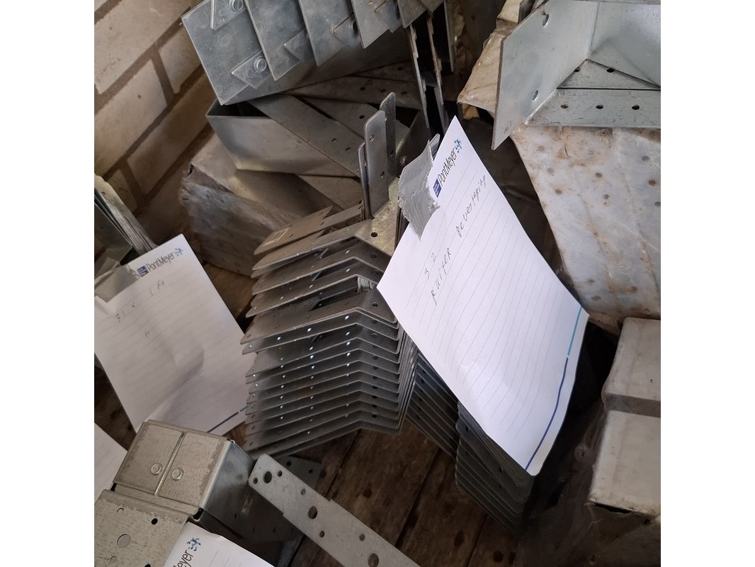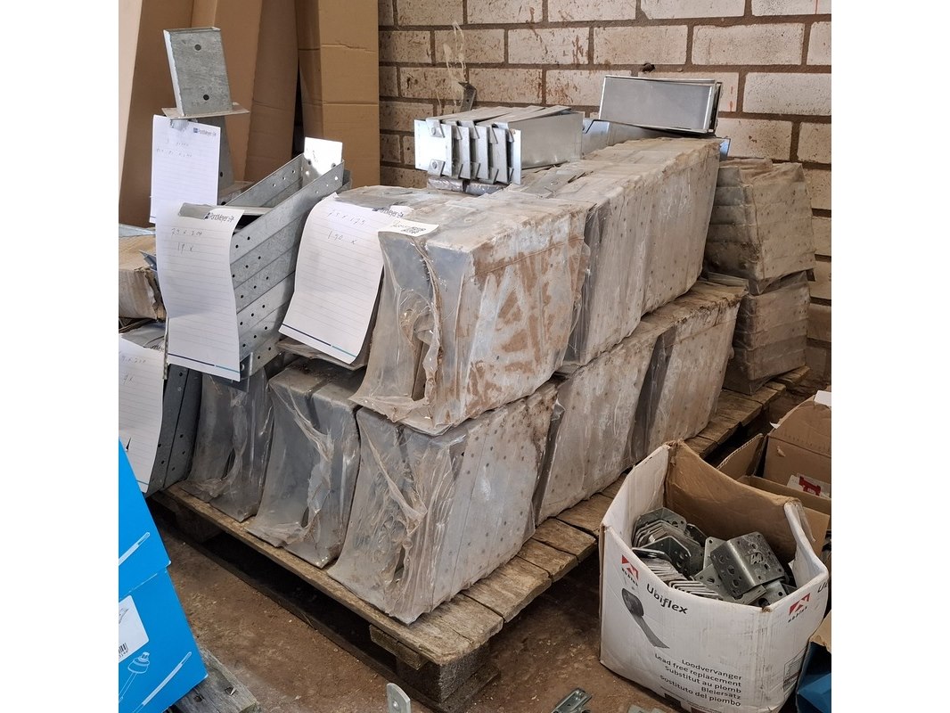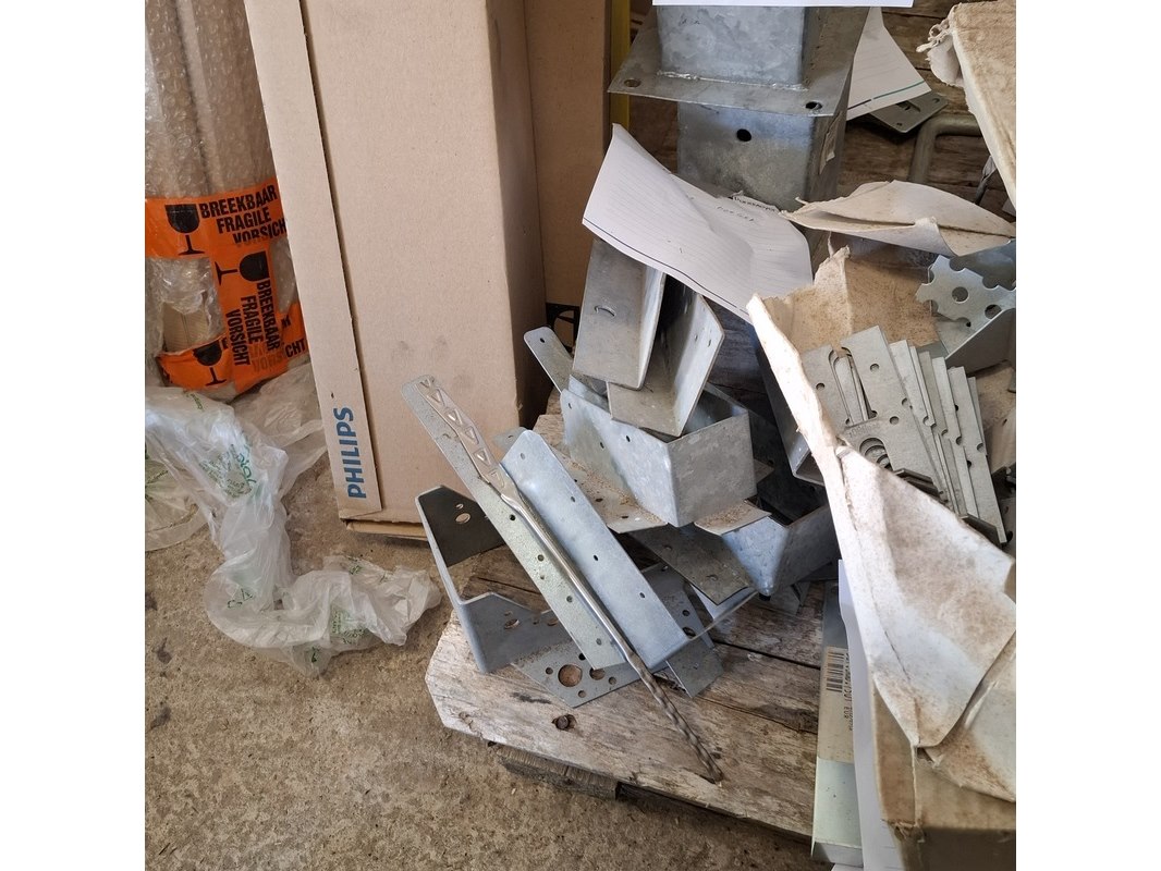 Product: Assortiment ijzerwaar Specificaties: o.a. : balkdragers, verbindingsplaten, etc.