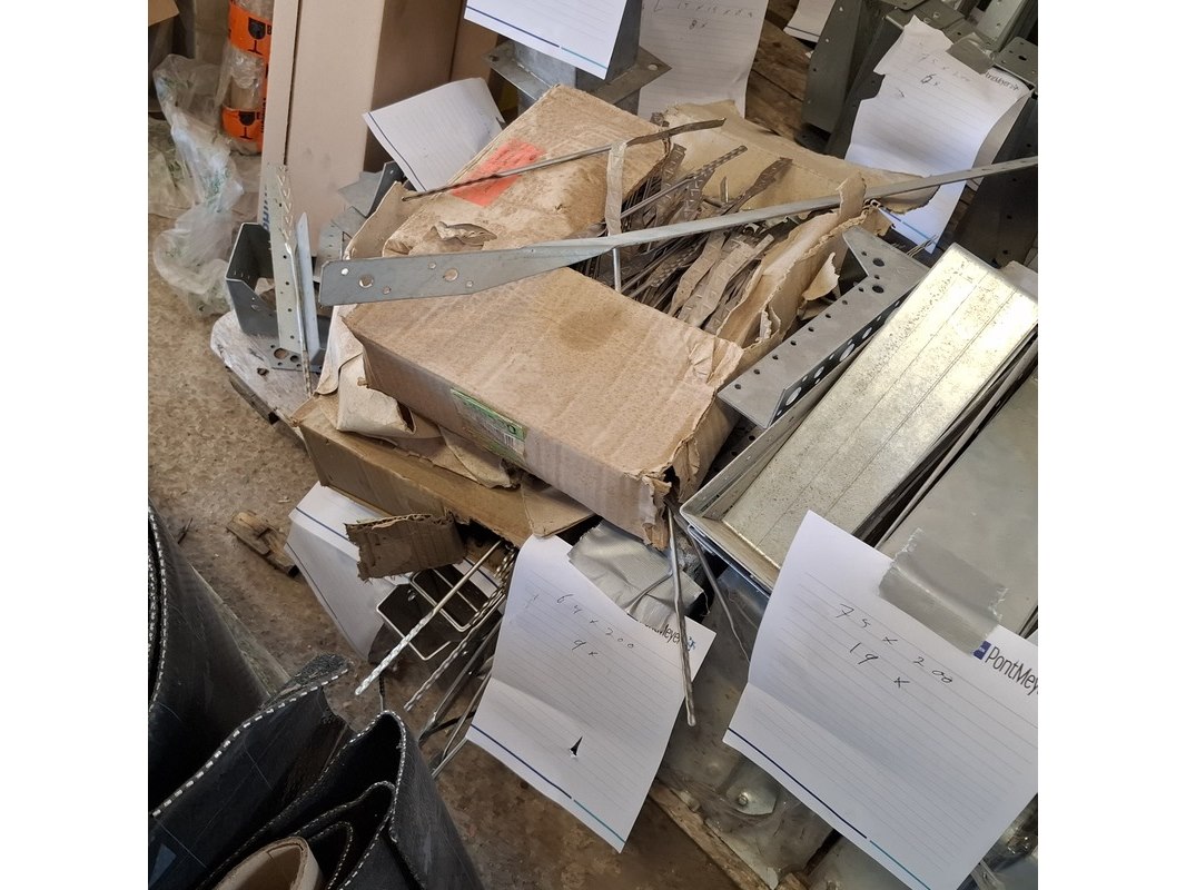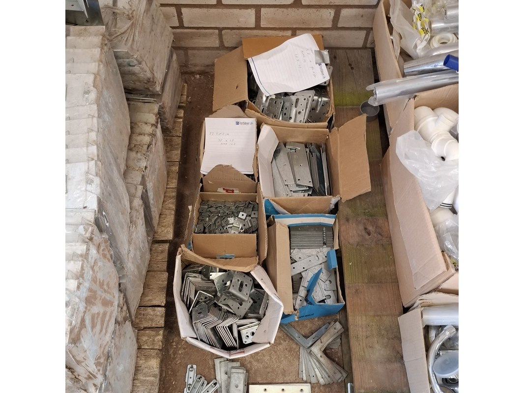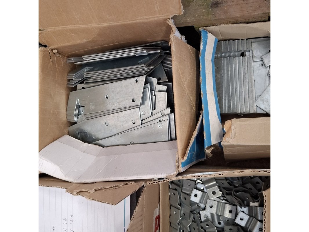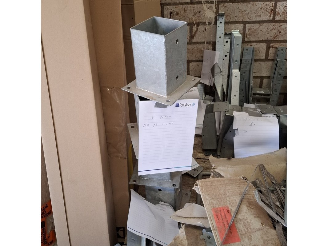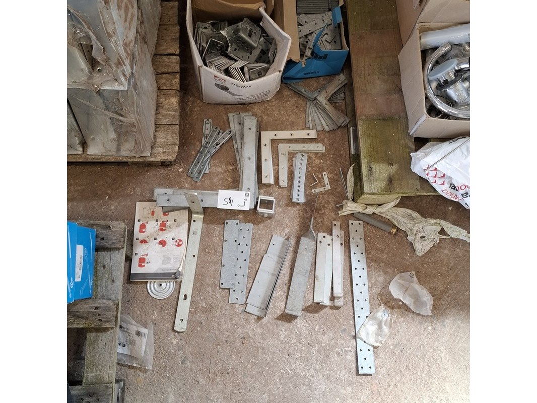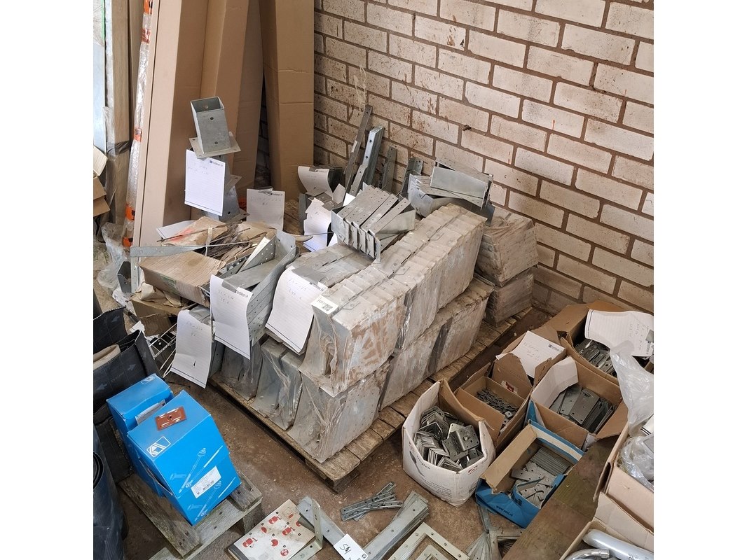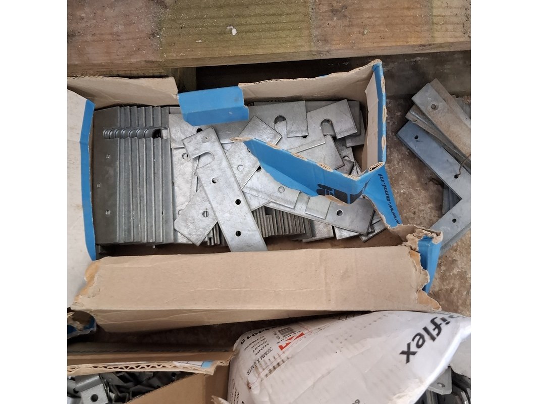 Product: Assortiment ijzerwaar Specificaties: o.a. : balkdragers, verbindingsplaten, etc.