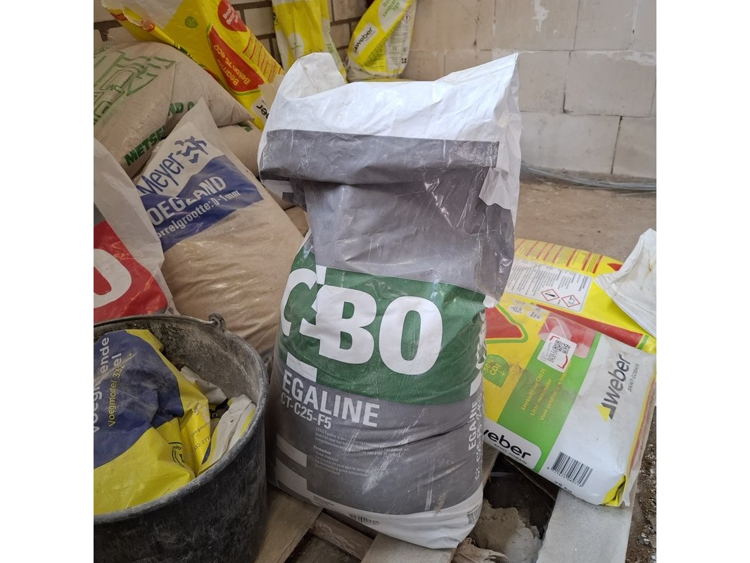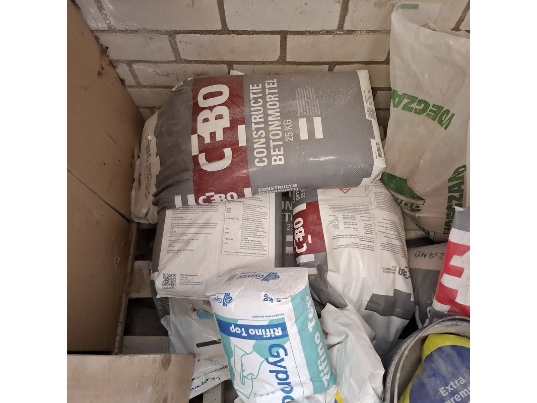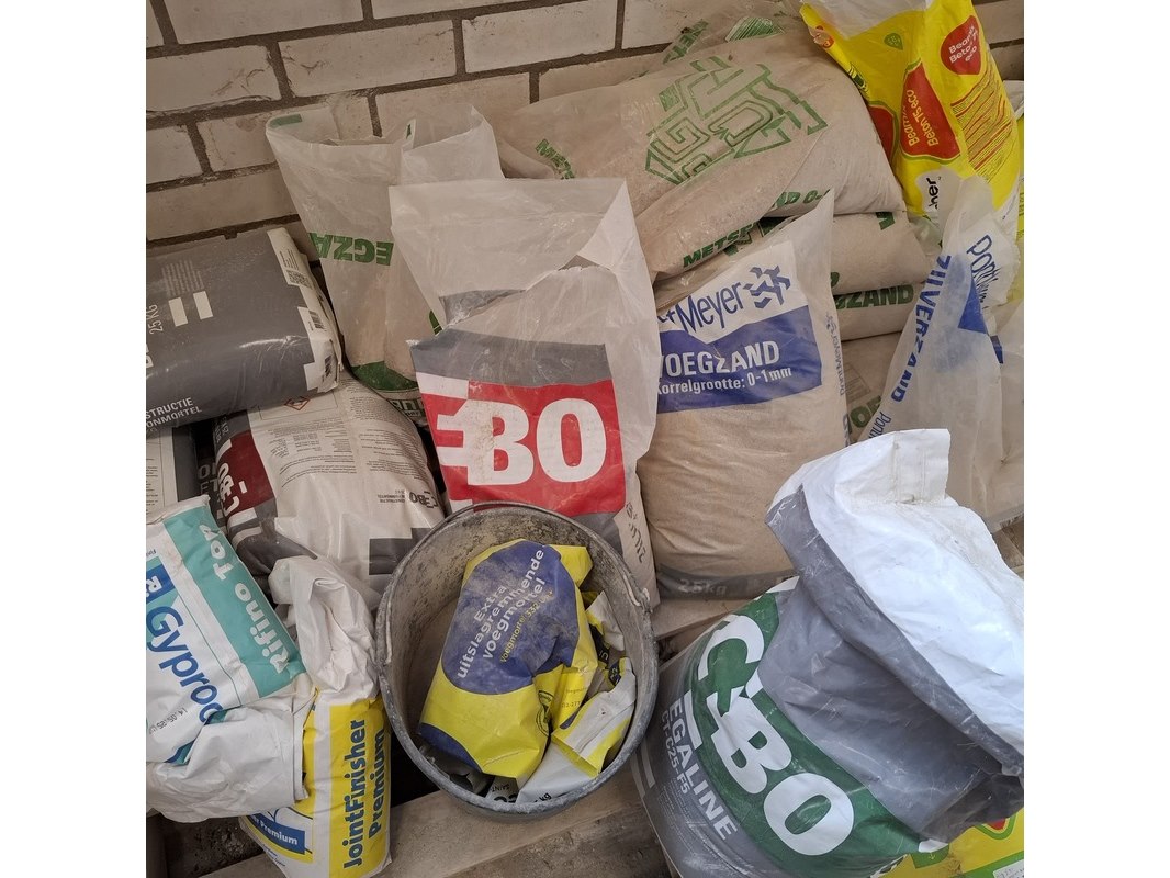 Product: Divers bouwbenodigdheden Specificaties: o.a. : basis zand cement, metselzand, voegzand, beton, gipsvulmiddel etc.