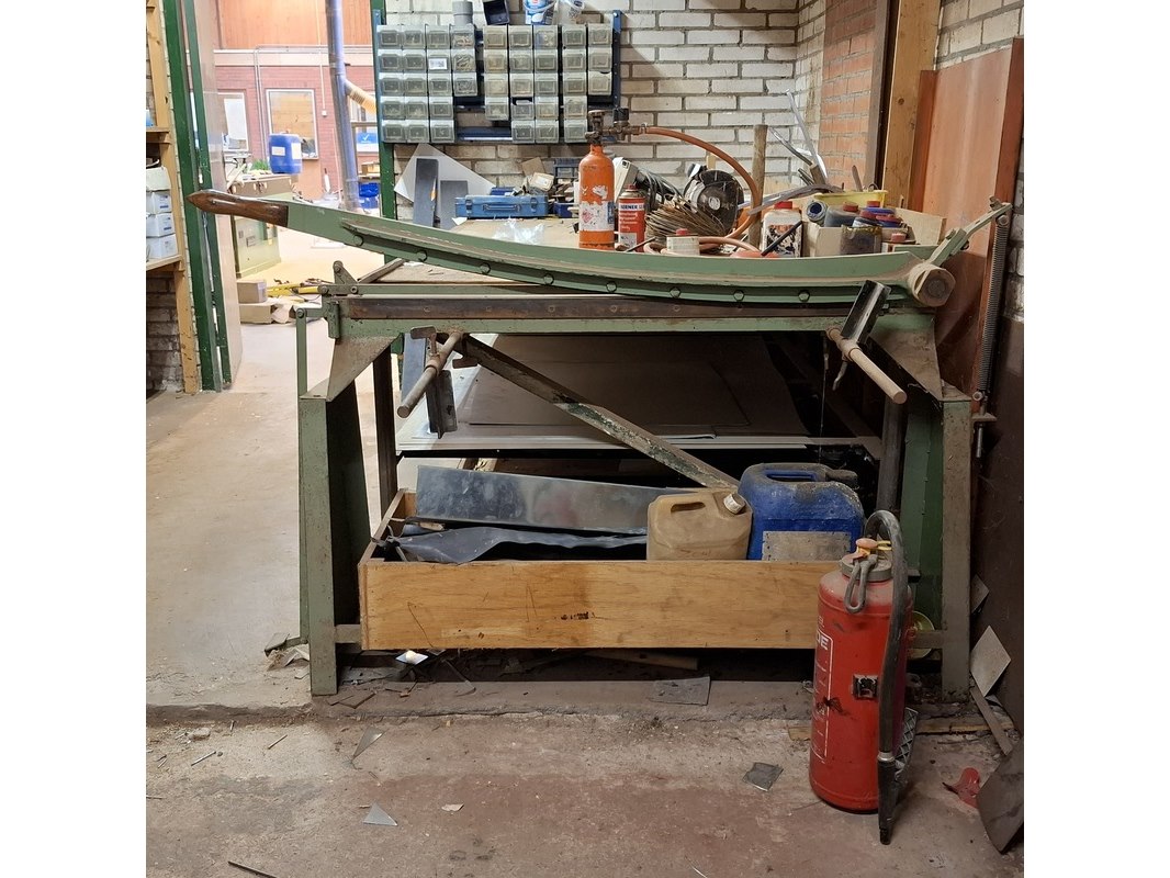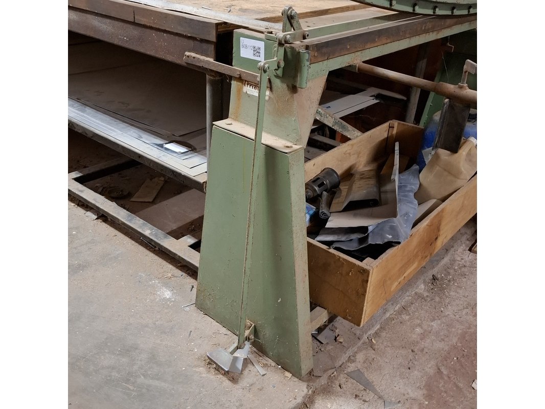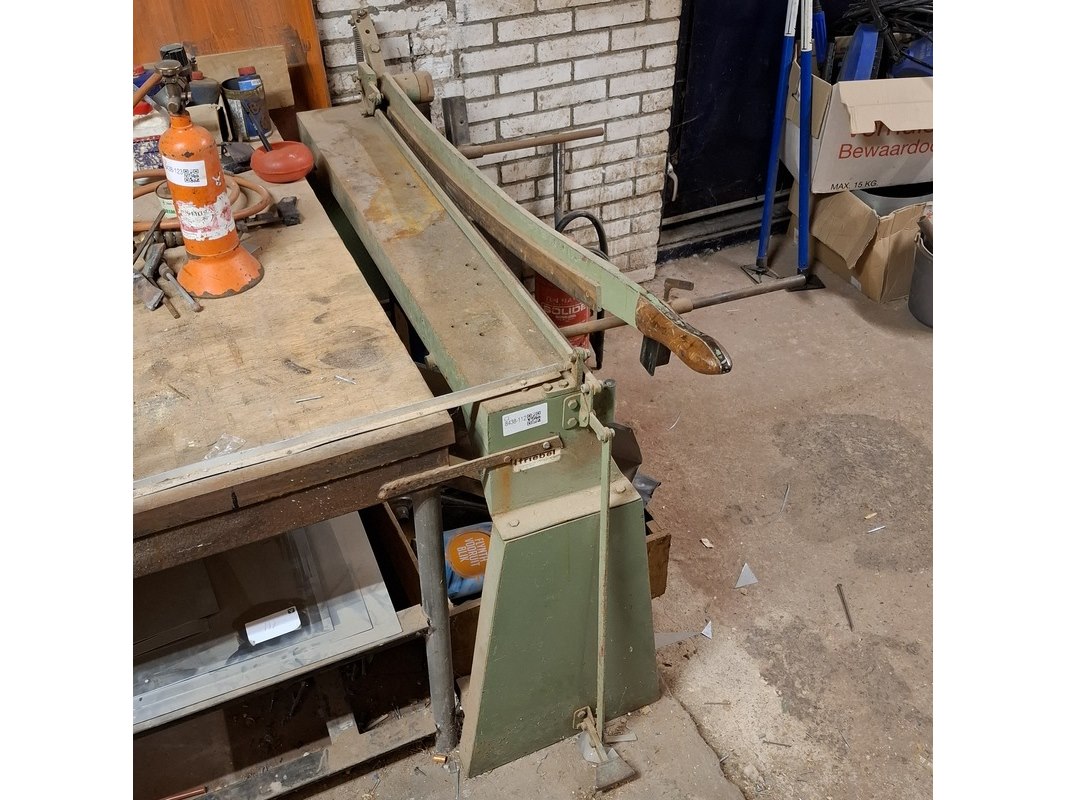 Merk: Friebel Product: Zinksnijder Afmeting: max werklengte ca. 100cm Specificaties: Let op! Kavel is aan de tafel geschroefd
