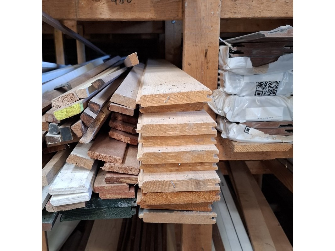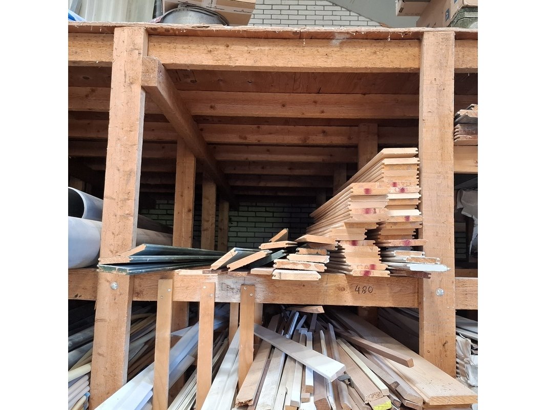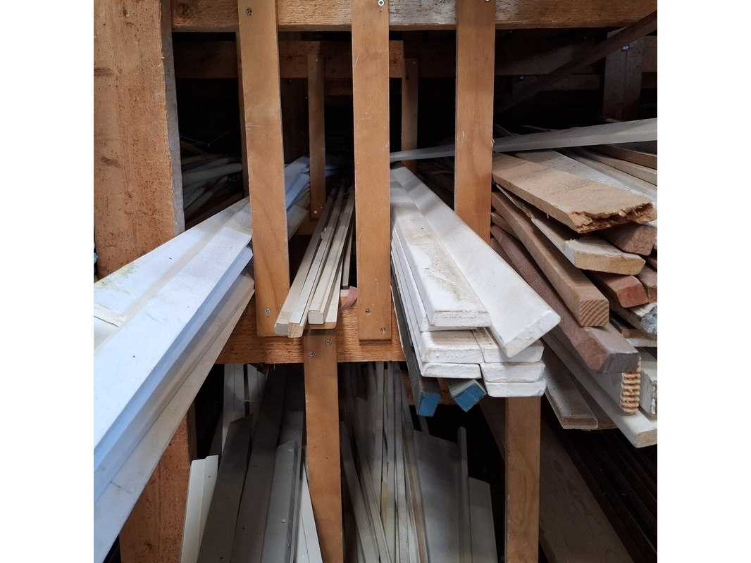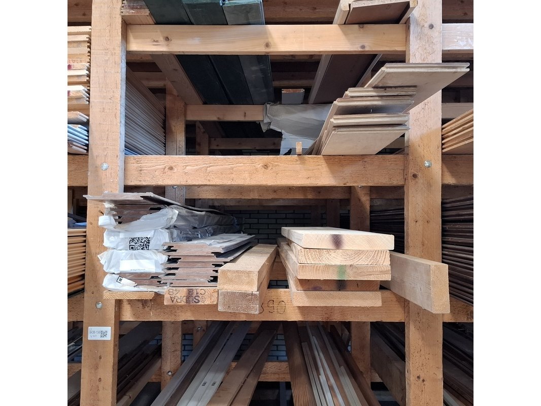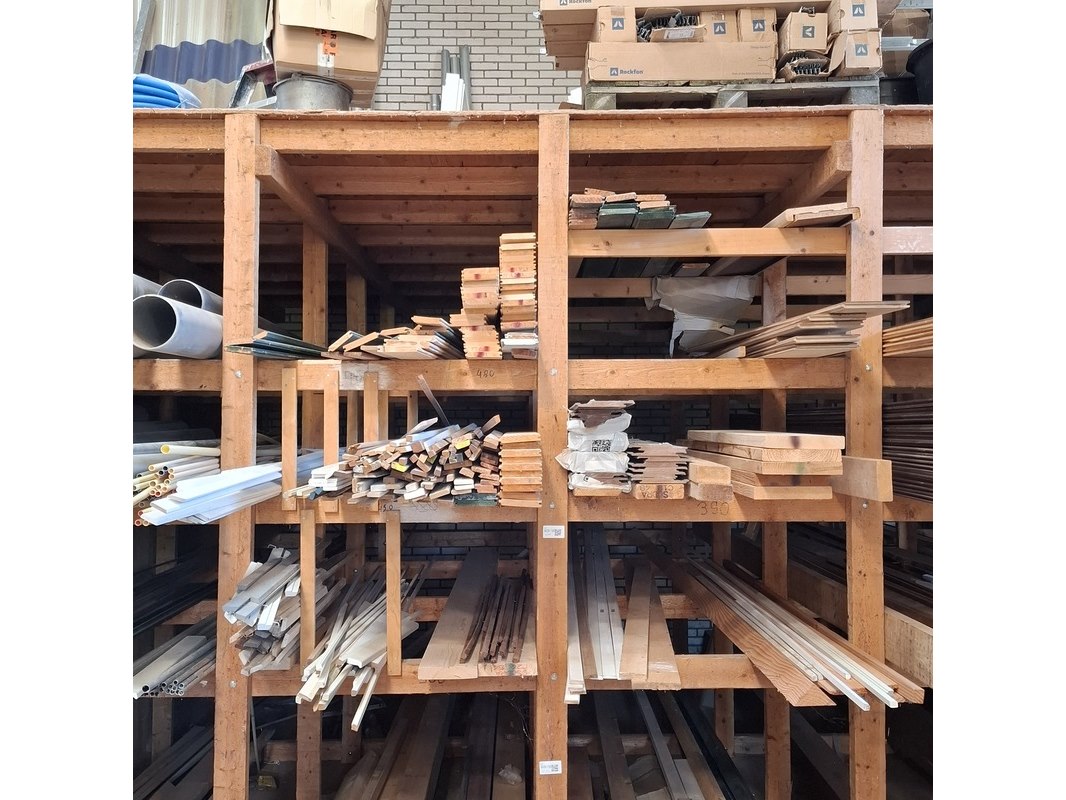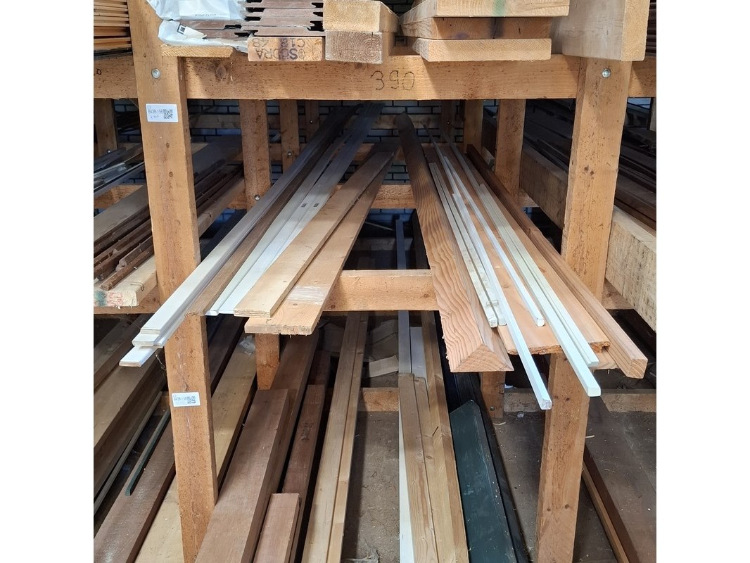 Product: Partij houten planken en latten in 7x vak Afmeting: max lengte ca. 500cm