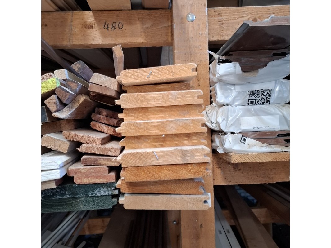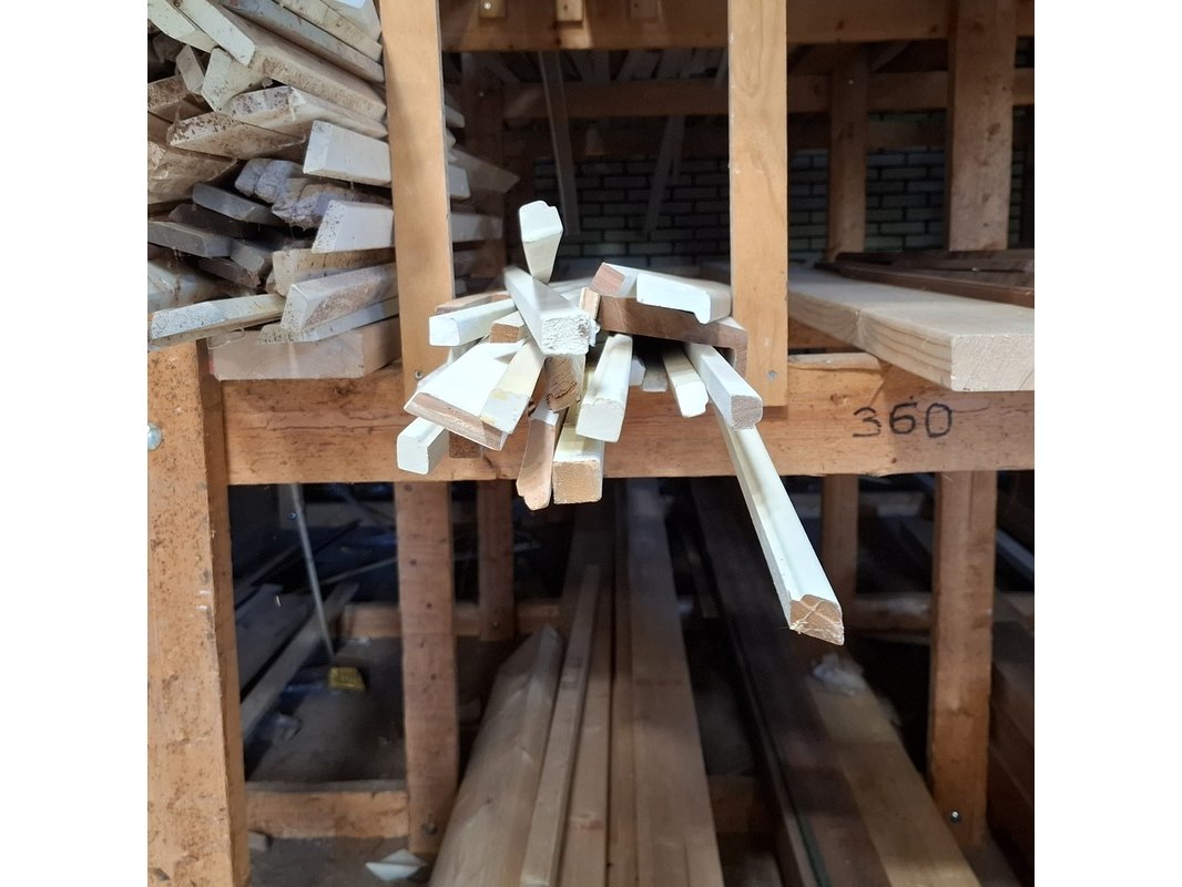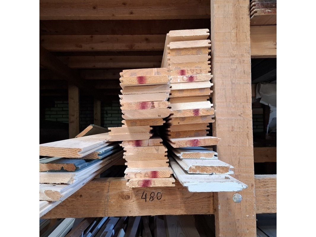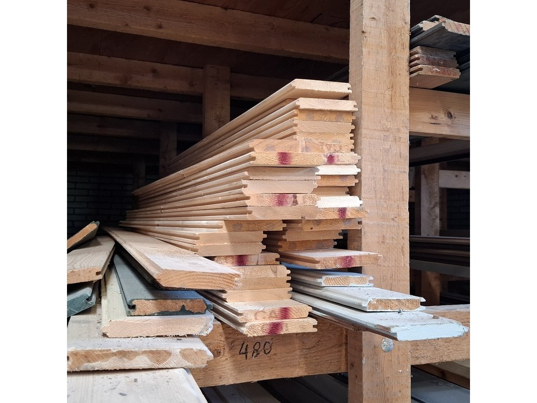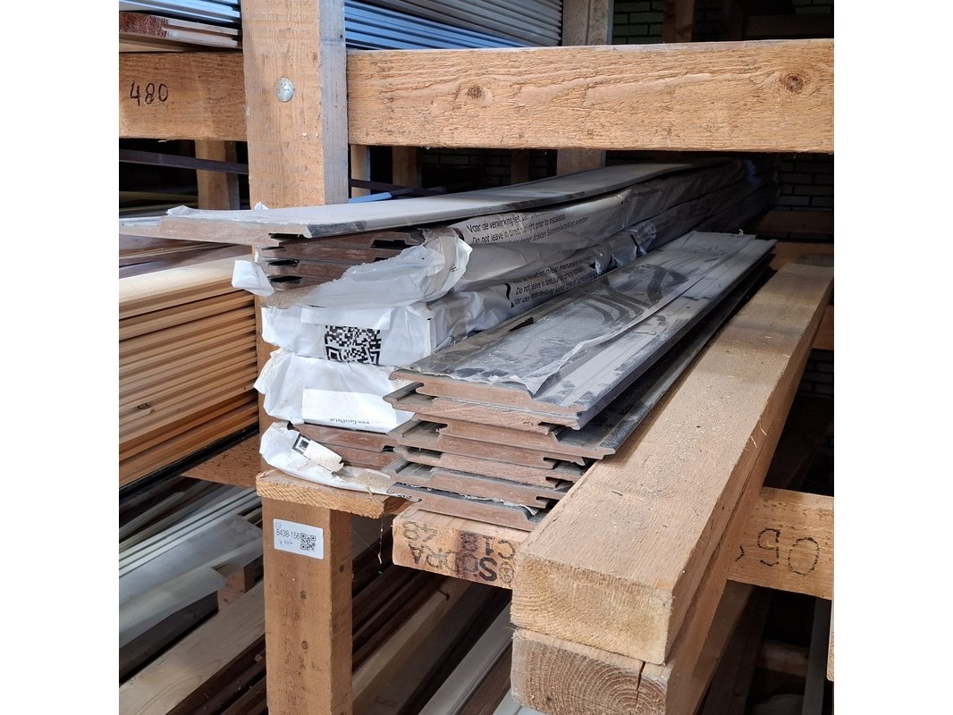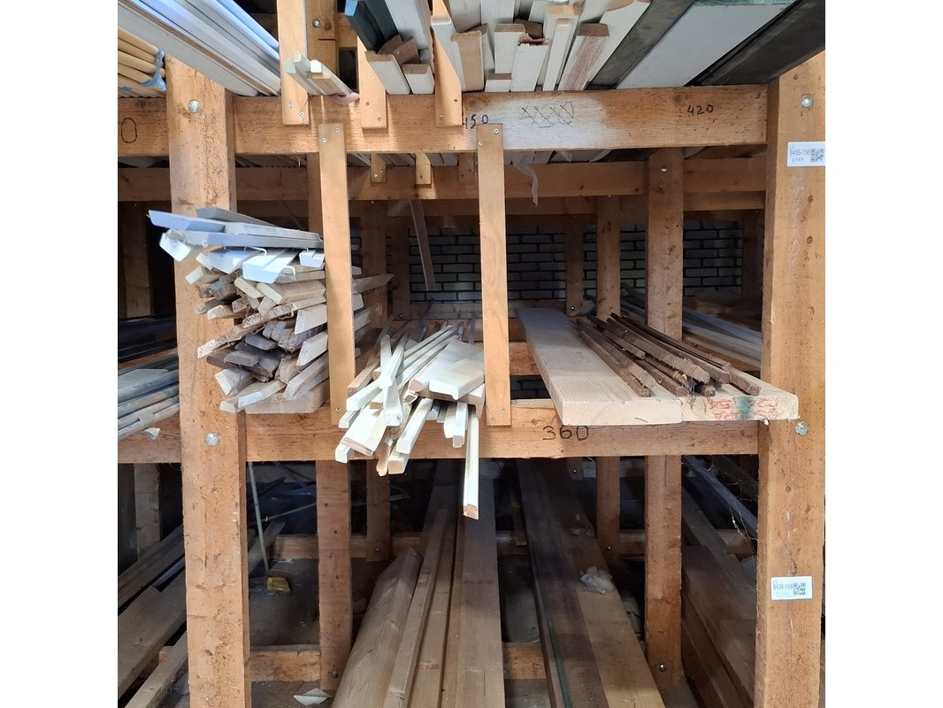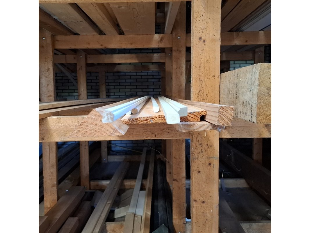 Product: Partij houten planken en latten in 7x vak Afmeting: max lengte ca. 500cm