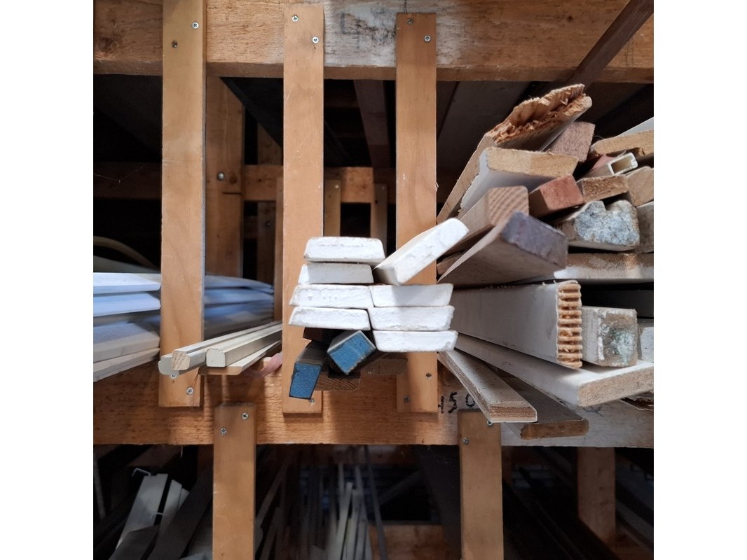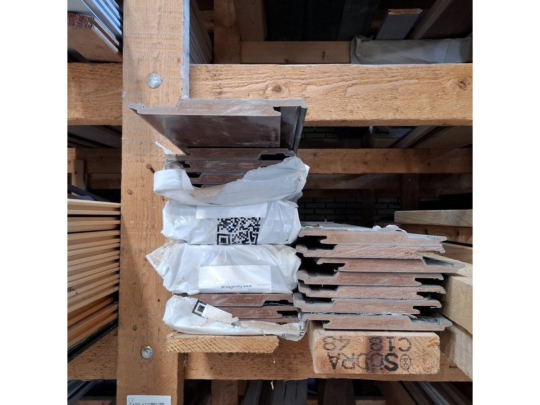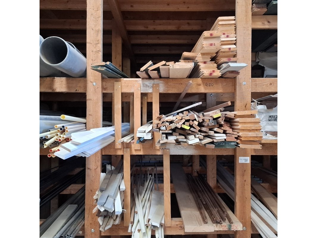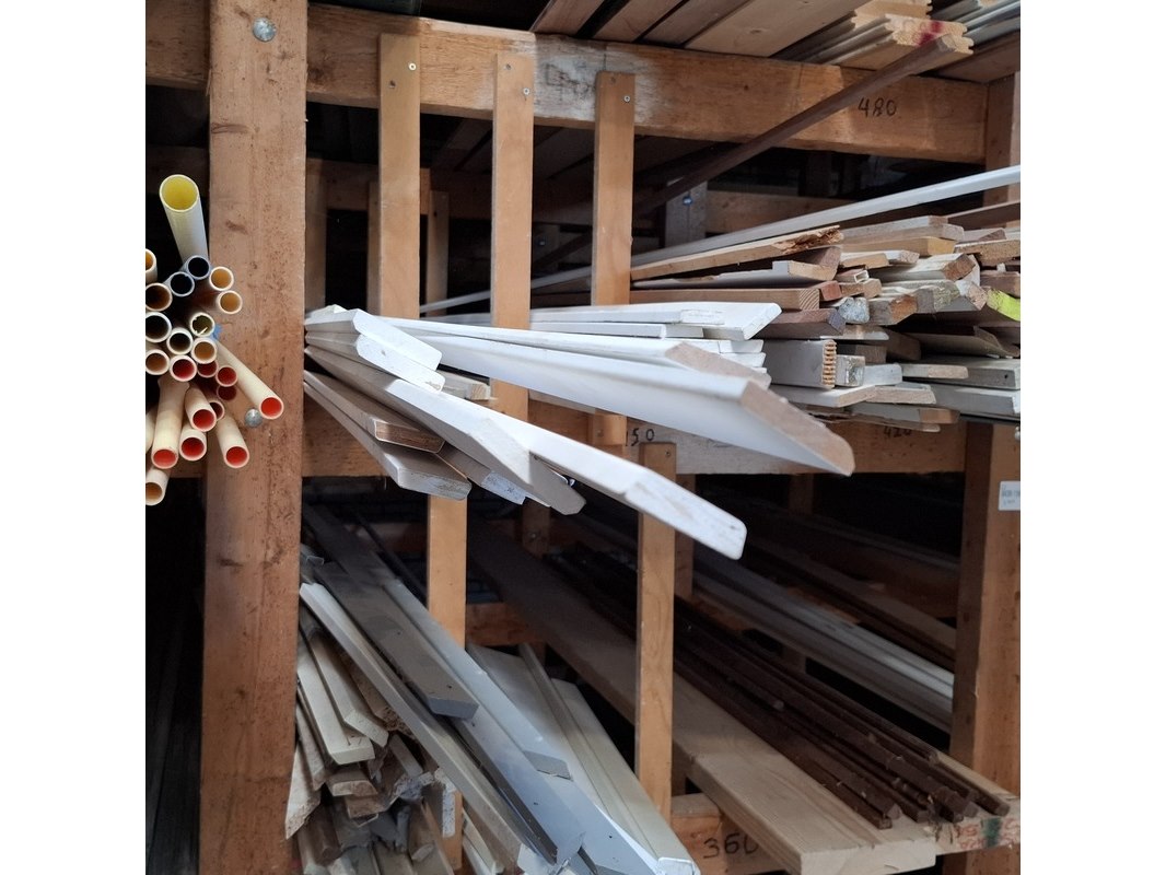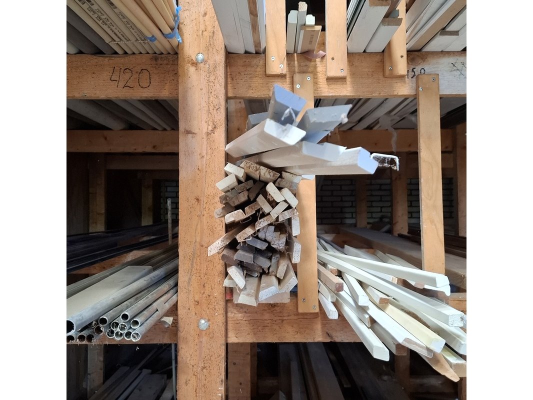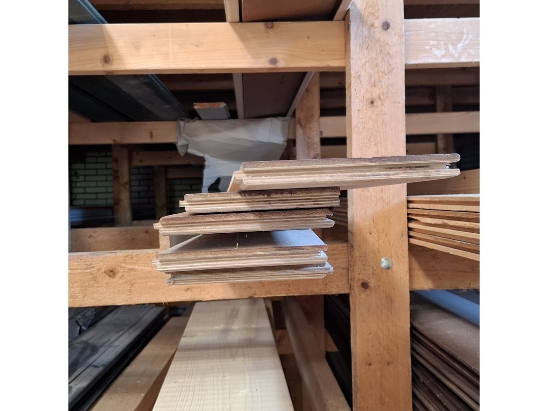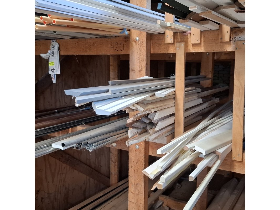 Product: Partij houten planken en latten in 7x vak Afmeting: max lengte ca. 500cm