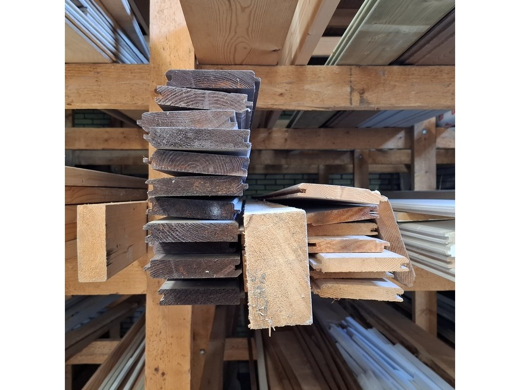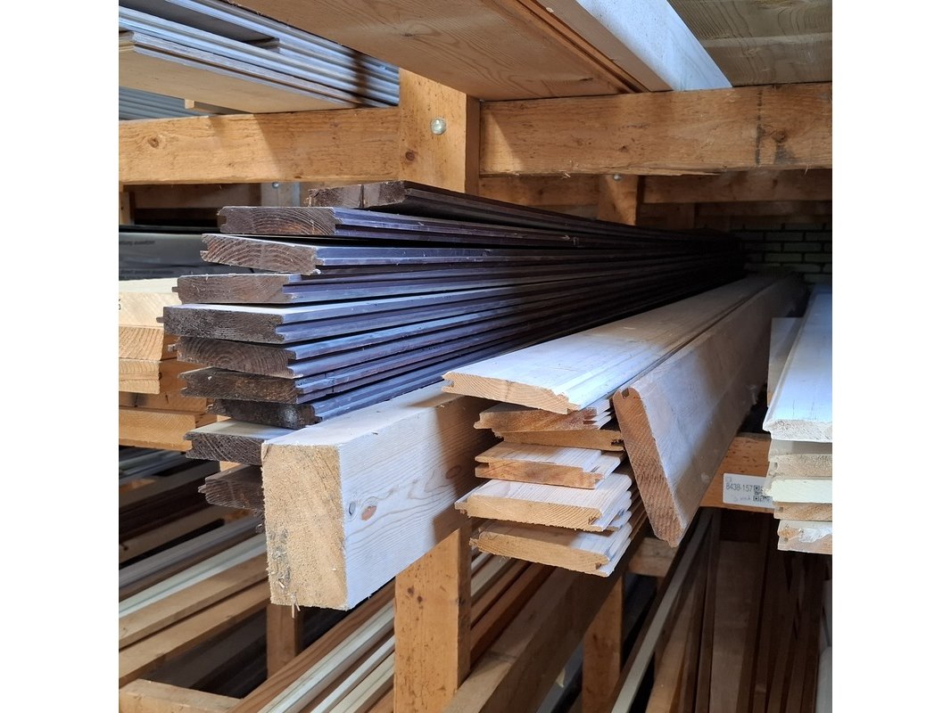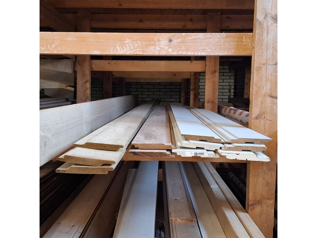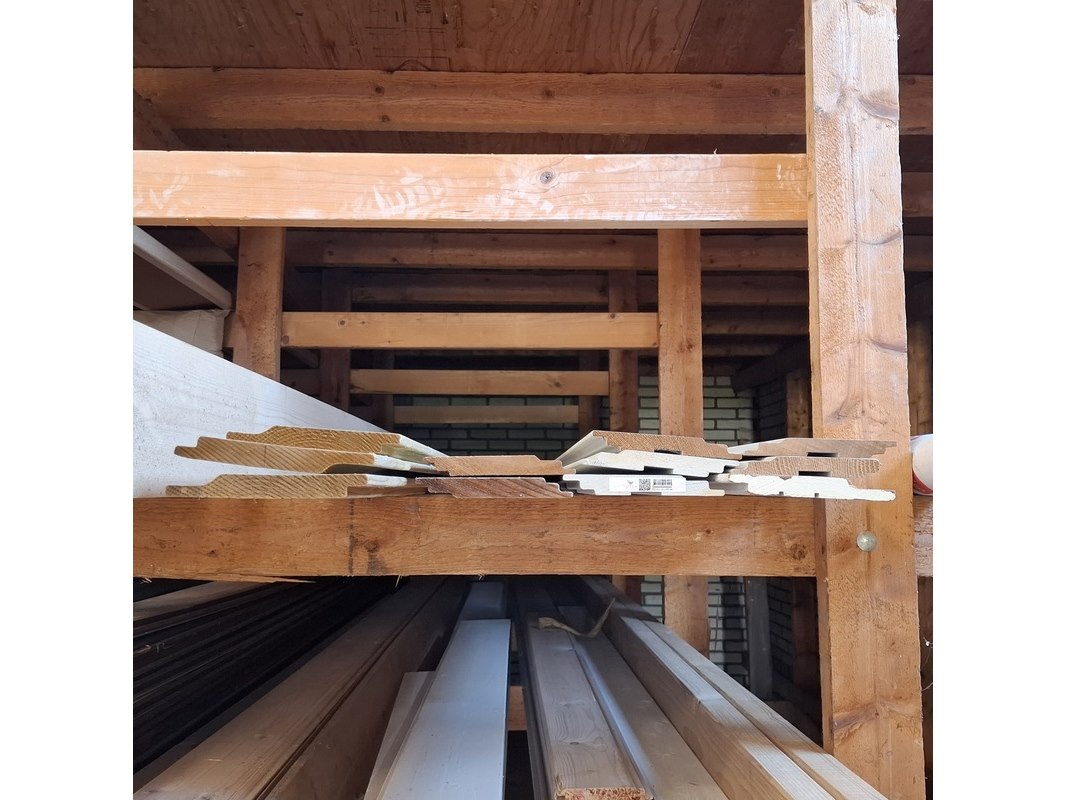 Partij houten planken in 3x vak