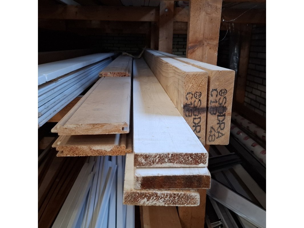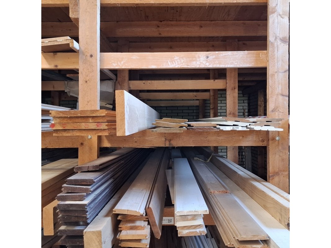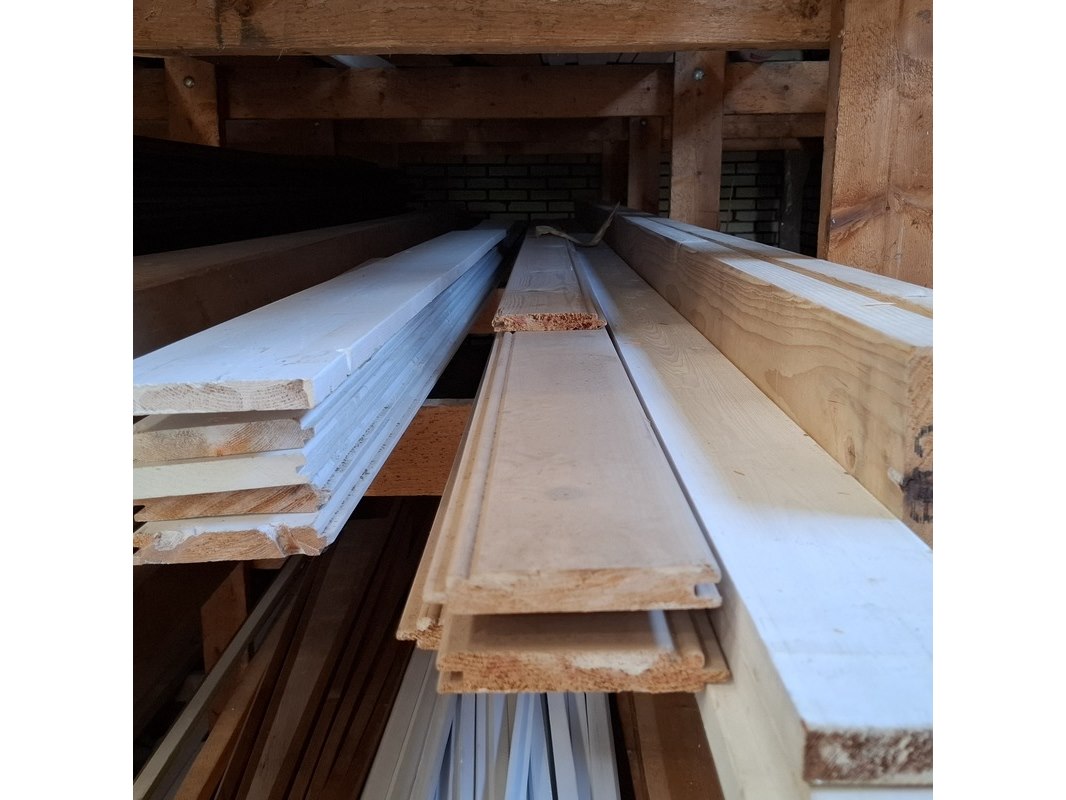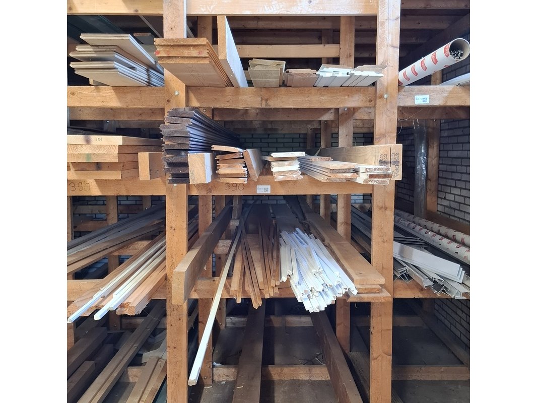 Partij houten planken in 3x vak