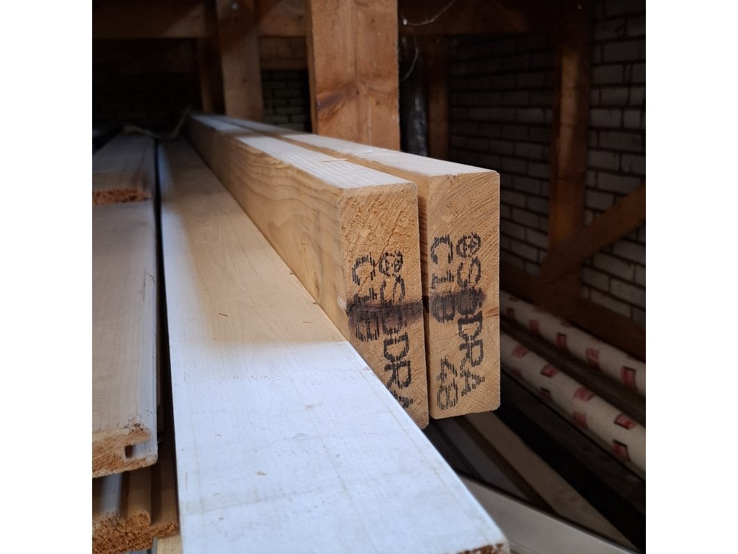 Product: Partij houten planken in 3x vak Afmeting: max lengte ca. 500cm