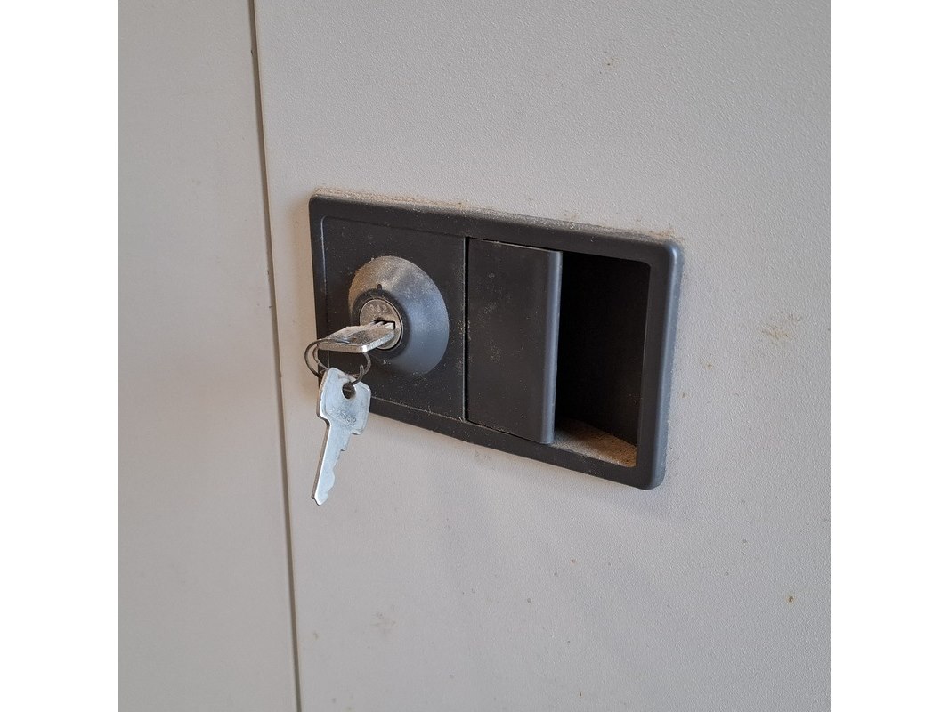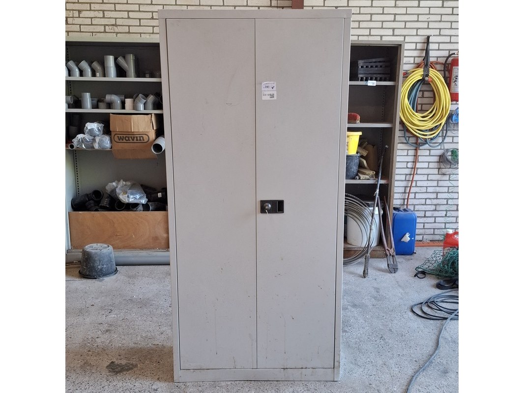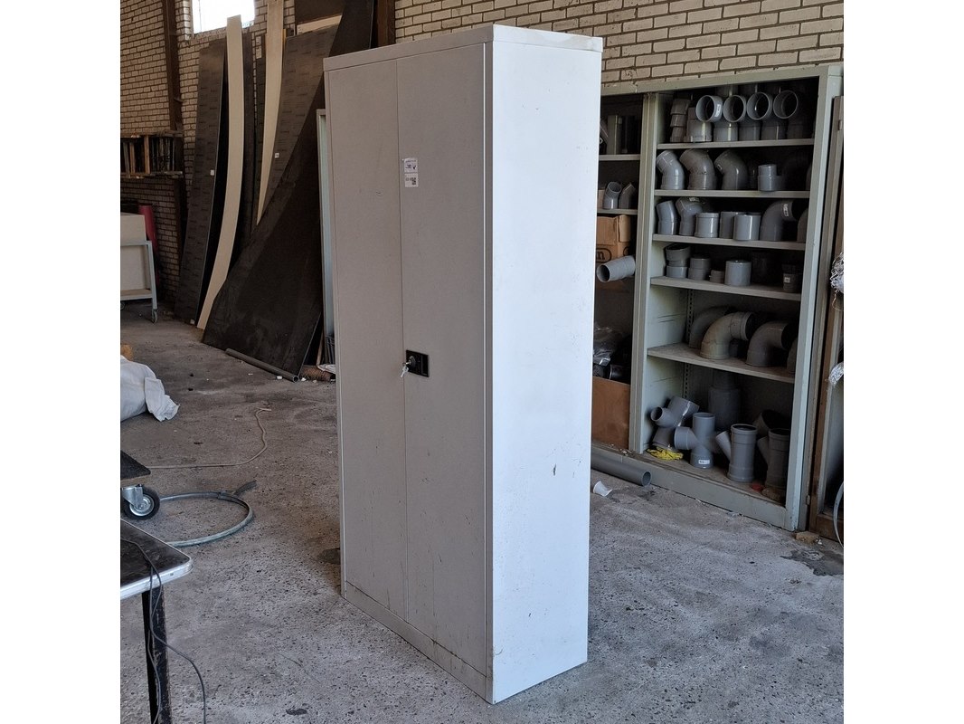 Product: Magazijnkast Materiaal: metaal Afmeting: hxbxd ca. 195x91x40cm Specificaties: inclusief sleutel