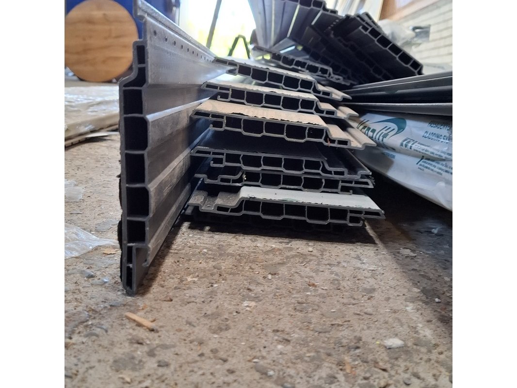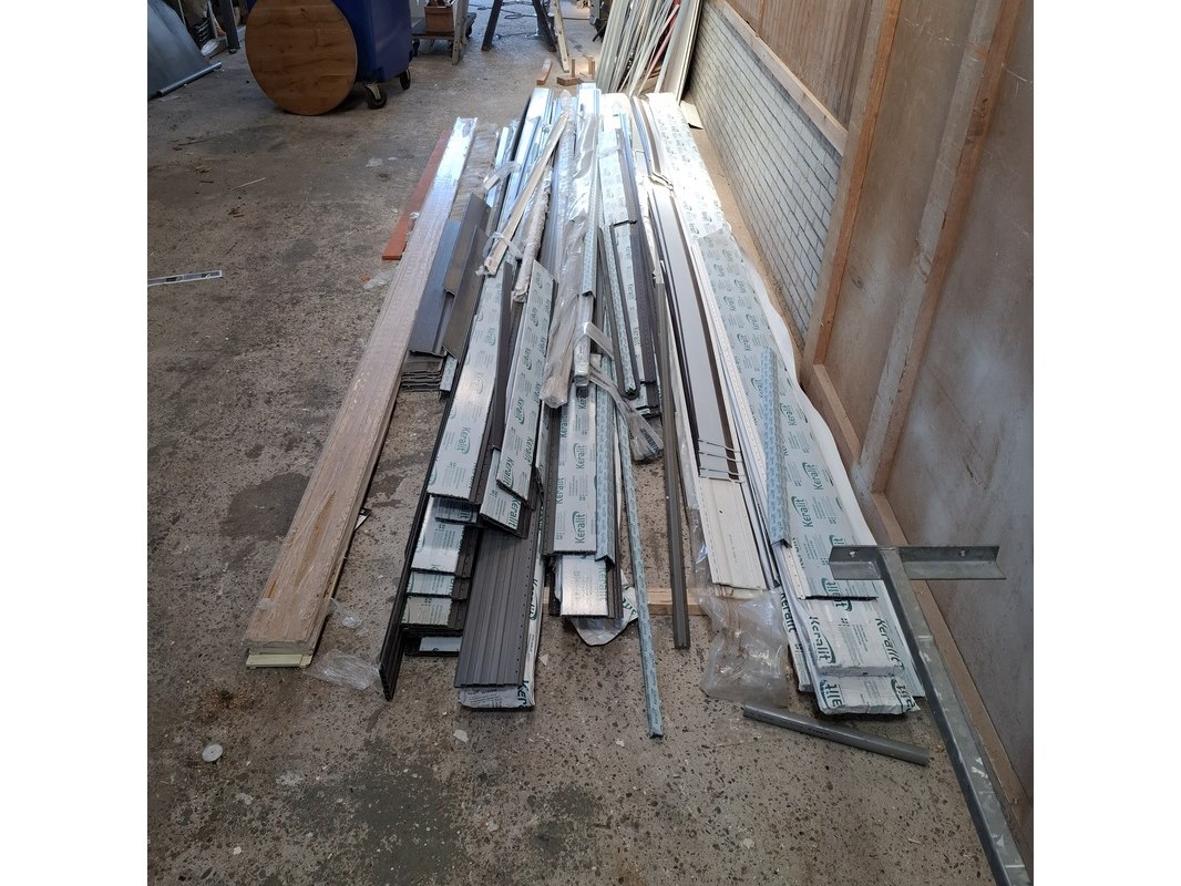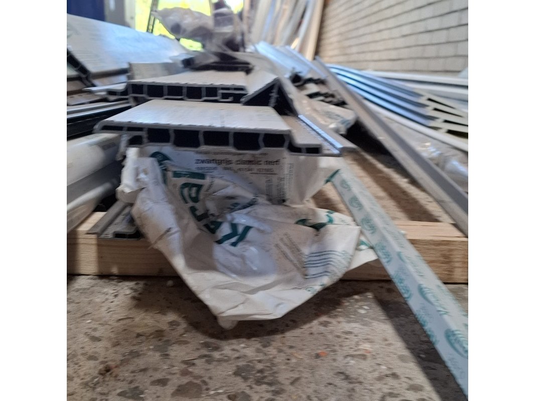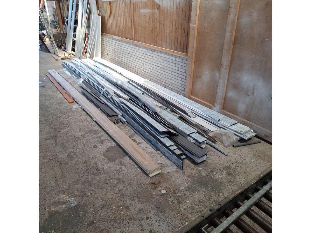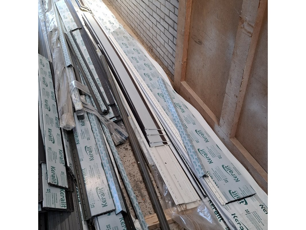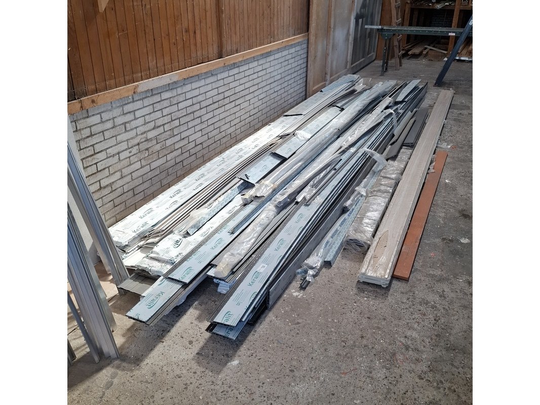 Product: Partij Keralit gevelpanelen Kleur: diverse kleuren Afmeting: diverse lengtes, max lengte ca. 600cm Specificaties: inclusief diverse aluminium profielen en kunststof afdekprofielen