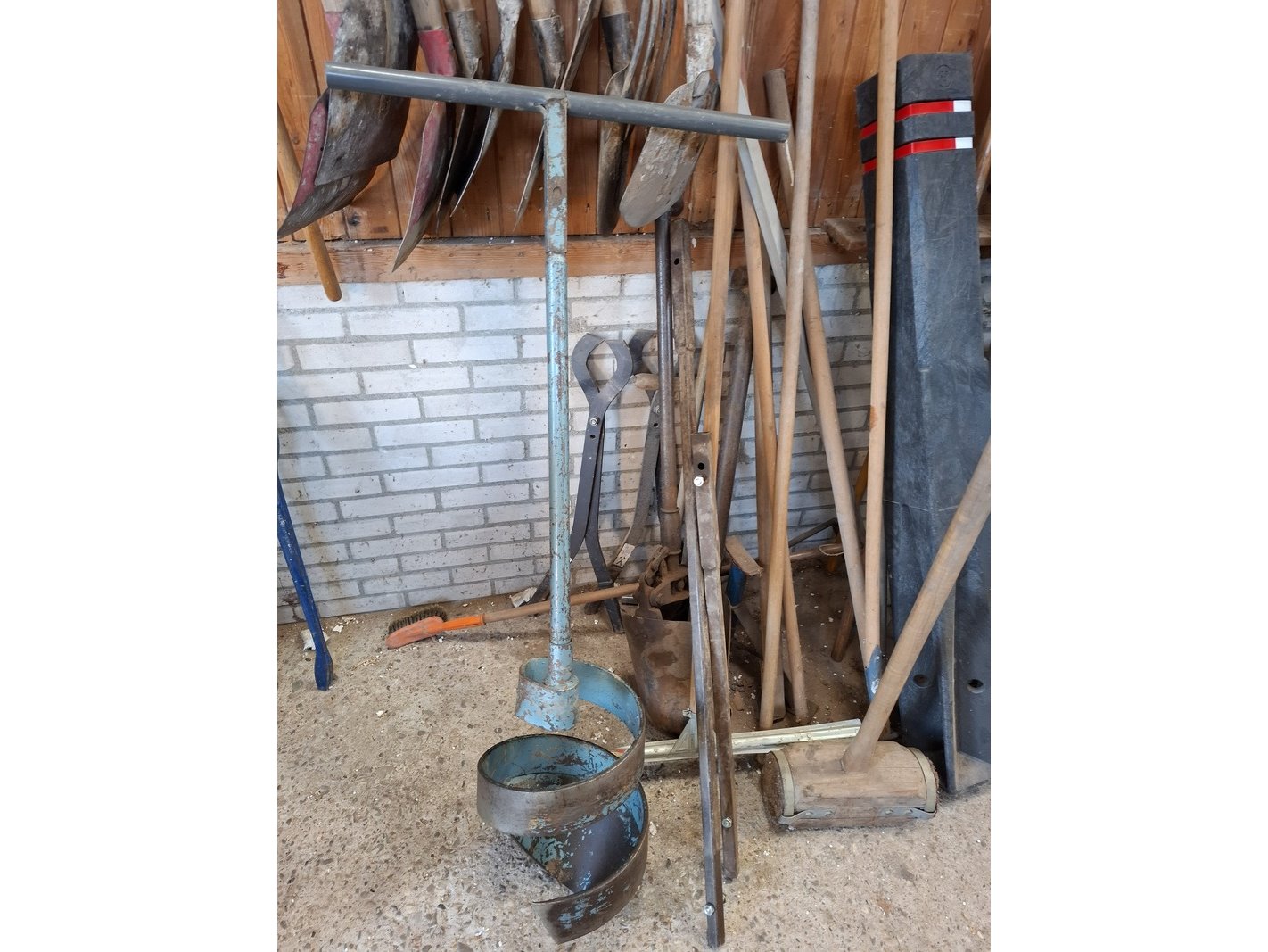 Product: Partij handgereedschap Specificaties: o.a. grondboor diam ca 26cm, schoppen, slegge, bandentangen, vork, etc.