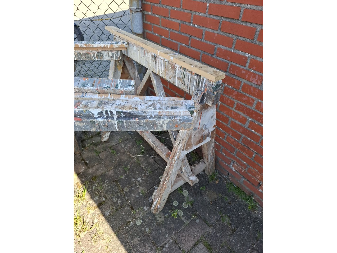 Product: 8x Houten schraag Afmeting: hoogte ca 85/90cm Specificaties: max lengte ca 225cm