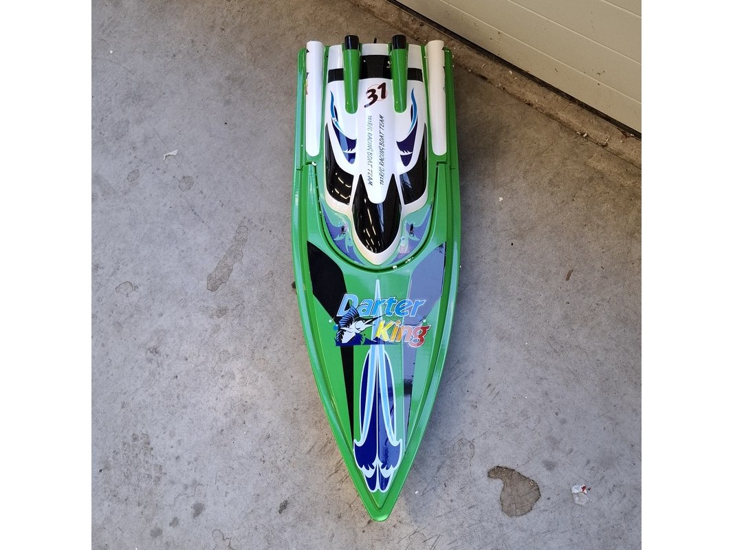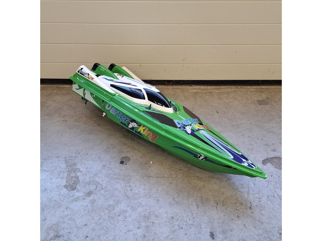 Radiografisch bestuurbare speedboot, darter king, mosquito craft-757, groen