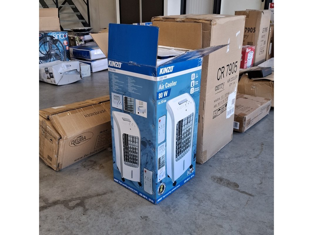Merk: Kinzo Product: Mobiele airco Afmeting: Ca. 57 cm Specificaties: 230V, in doos