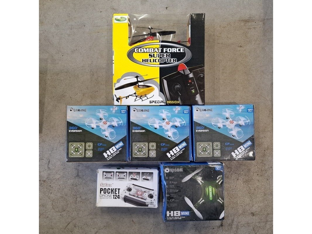 5x bestuurbare drone en 1x bestuurbare helikopter, o.a. eachine