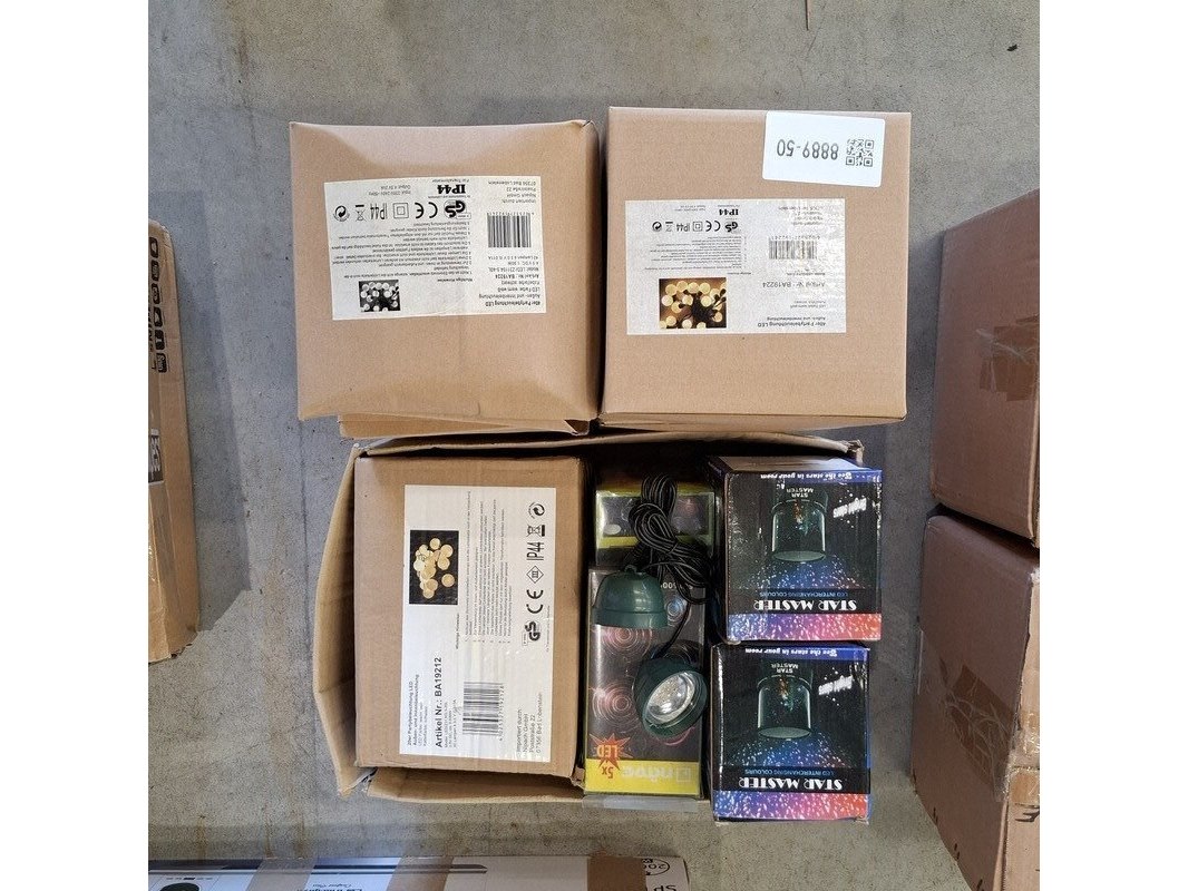 Product: Partij verlichting Specificaties: Verschillende soorten verlichting, o.a. lichtsnoeren.