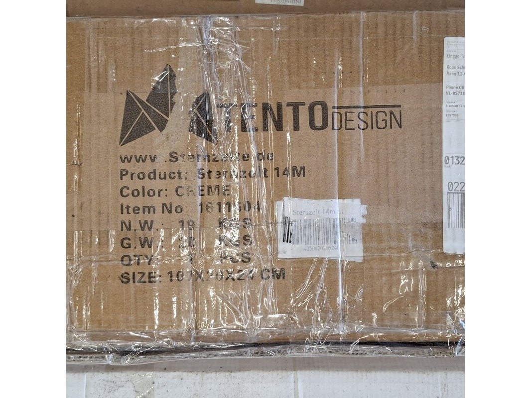 Merk: o.a. TentoDesign Product: Partytent Specificaties: Compleetheid, model en afmetingen onbekend.