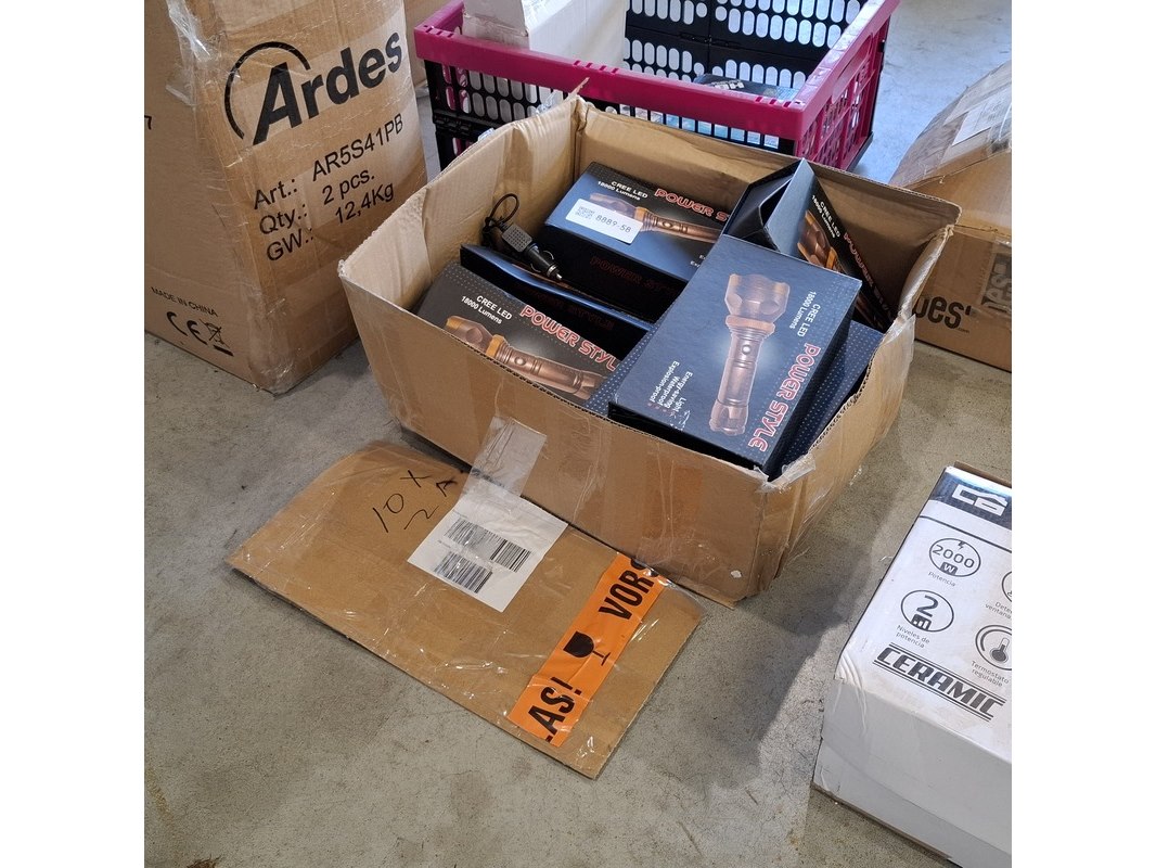Merk: Power Style Product: Led zaklamp Specificaties: In doos, inclusief 2 batterijen, lader en autolader