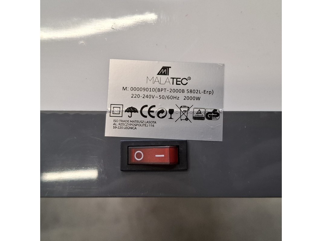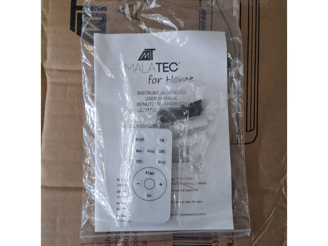 Merk: Malatec Product: Wandluchtverhitter Specificaties: 230V, inclusief afstandsbediening