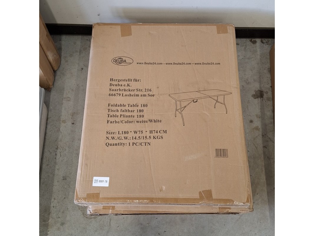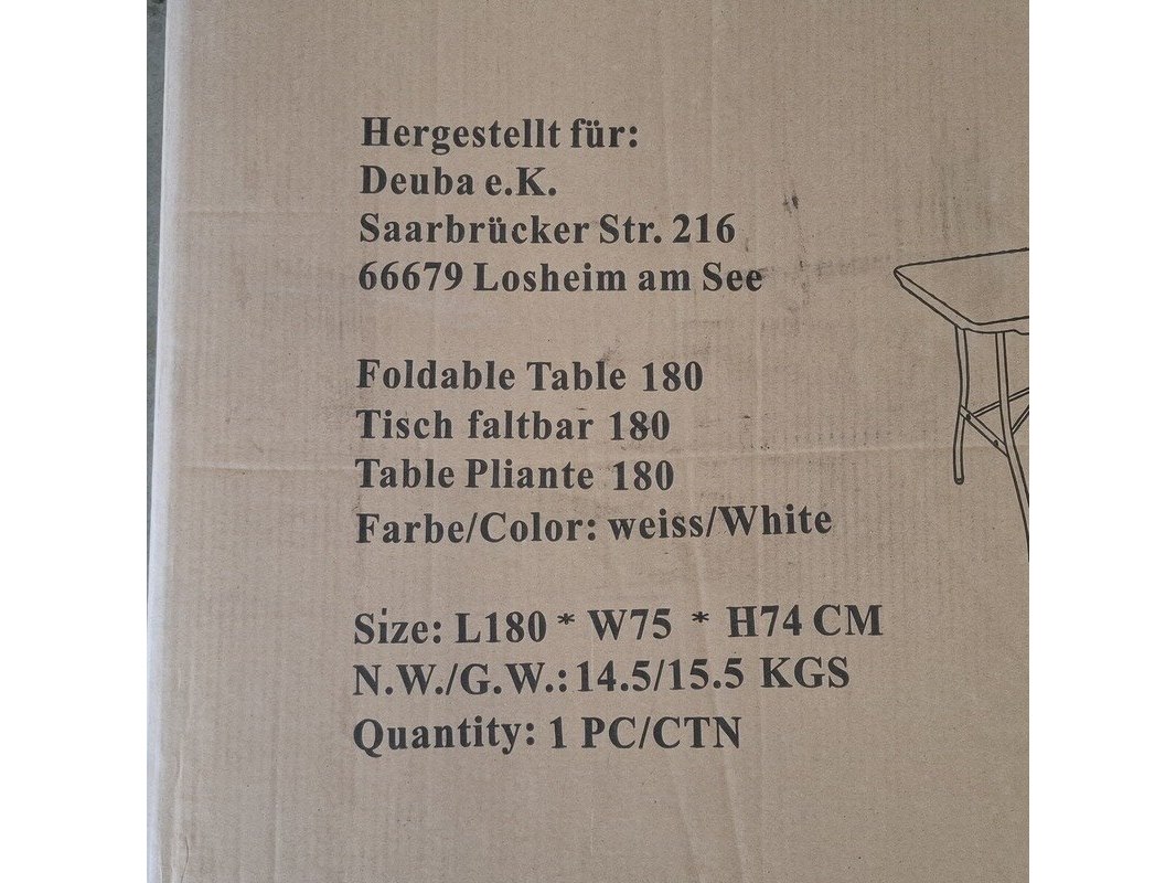 Merk: Deuba Product: Klaptafel Afmeting: lxbxh ca. 180x75x74 cm Specificaties: In doos