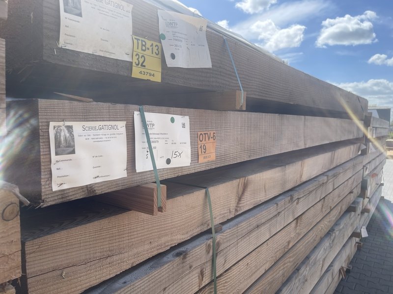 5x douglas balken fijnbezaagd, 200x200mm, lengte 400cm