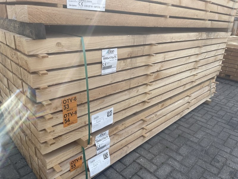 Ca. 24x douglas balken fijnbezaagd, 75x175mm, lengte 300cm