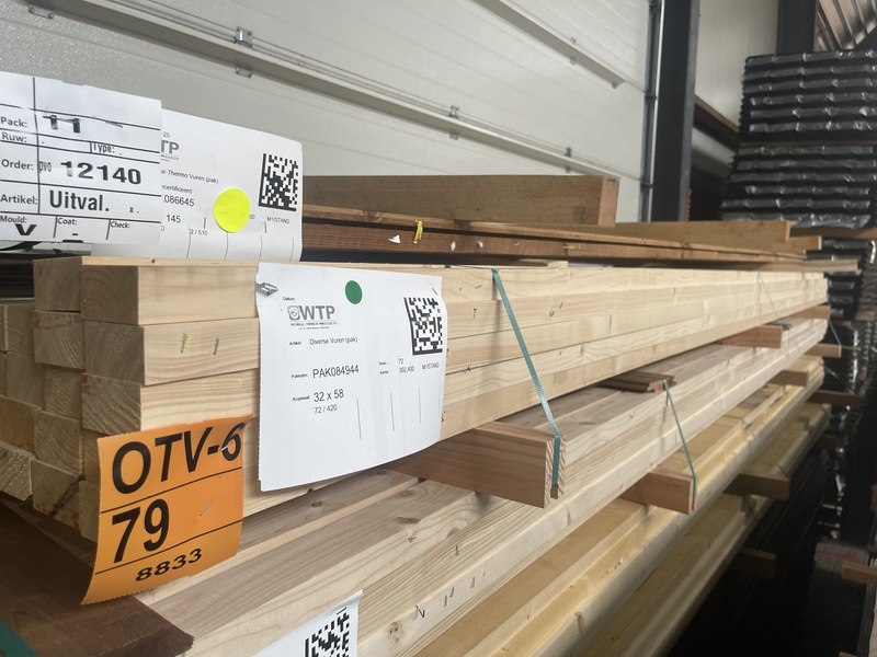 Ca. 72x vuren regels geschaafd , 32x58mm, lengte 420cm