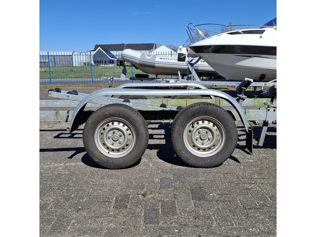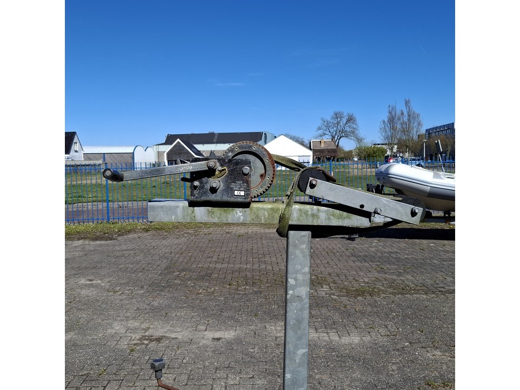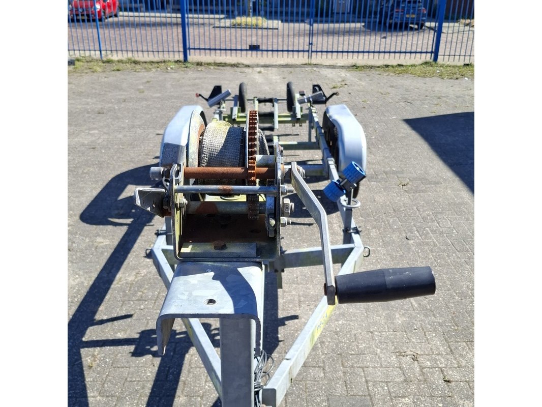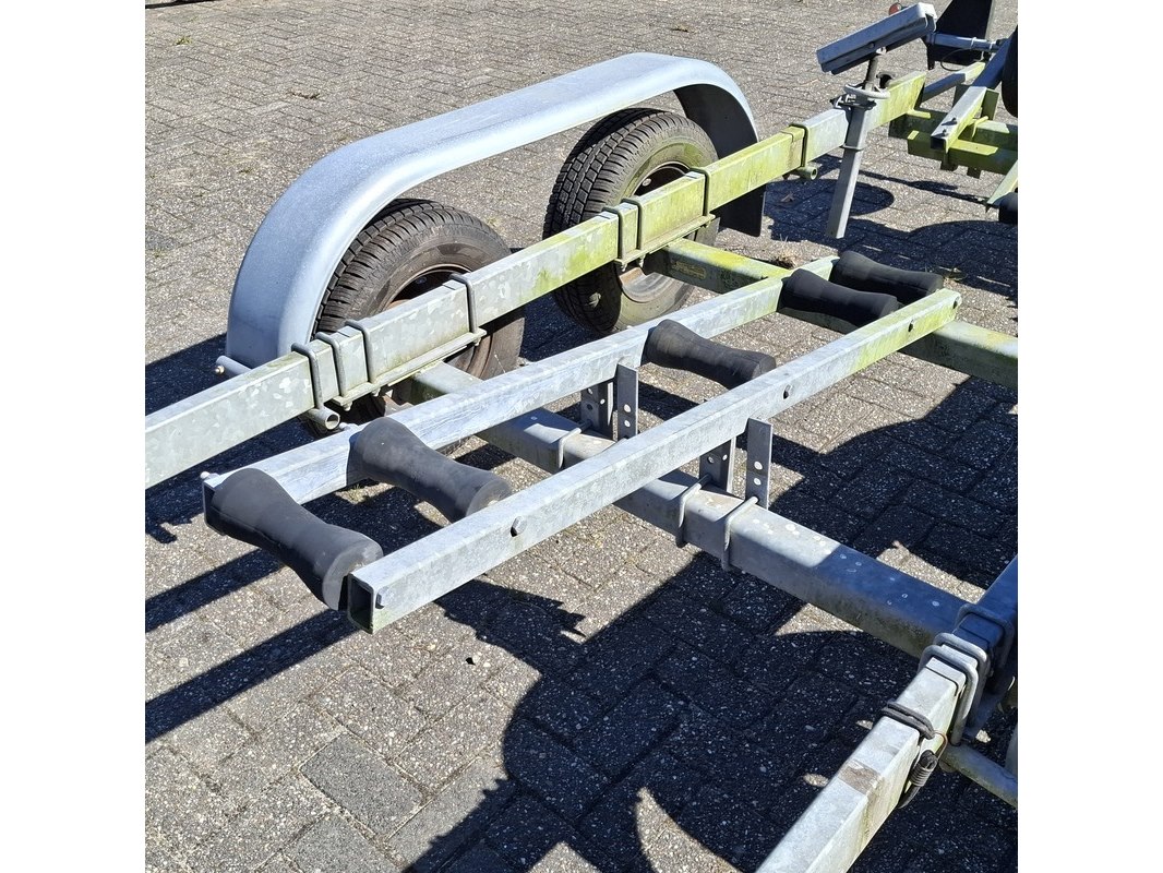 Merk: Pega Product: Boottrailer Materiaal: Gegalvaniseerd BouwJaar: 2006 Conditie: Gebruikt Specificaties: 2x 1350 kg assen van BPW, ongeremd. Lengte zonder uitschuifbalk ca. 600 cm Kantelbare centreer rollen en kielrollen 2 kimrollen en 2 achter steunen (het rubber op de achter steunen is oud) Verlichtingbalk aanwezig, niet getest, 1 buitenkap is beschadigt. Voorzien van lier, zelf inklappend neuswiel.