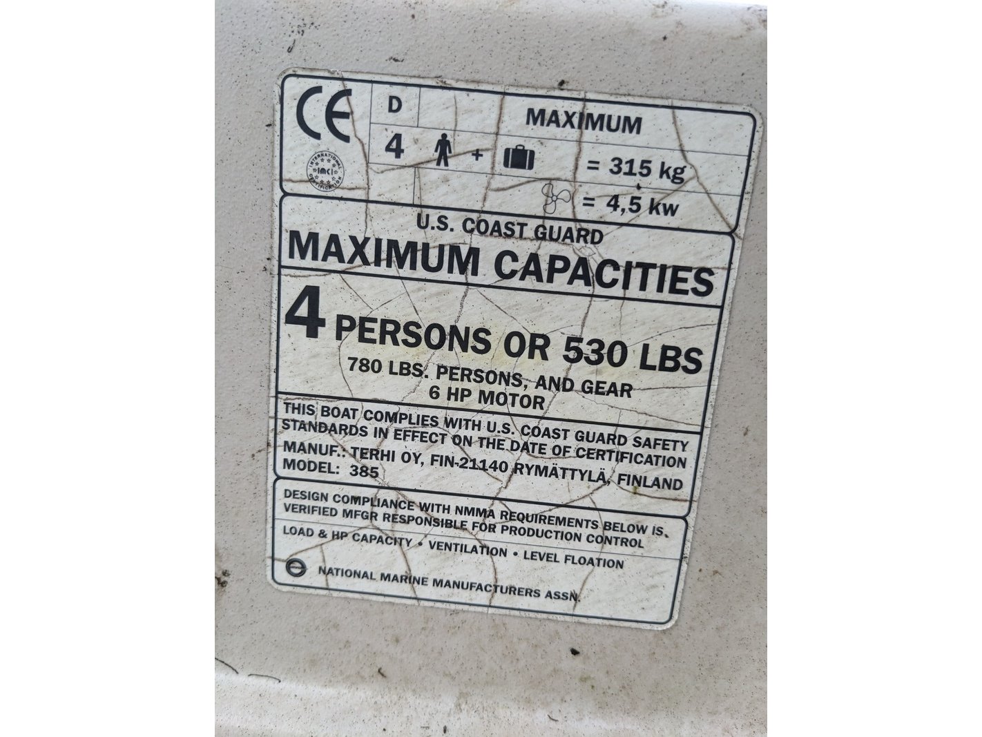 Merk: Terhi Product: Boot Kleur: Wit Conditie: Gebruikt Specificaties: Boot Terhi 385 max 4 personen max 4,5 kw, heeft een schoonmaakbeurt nodig.
