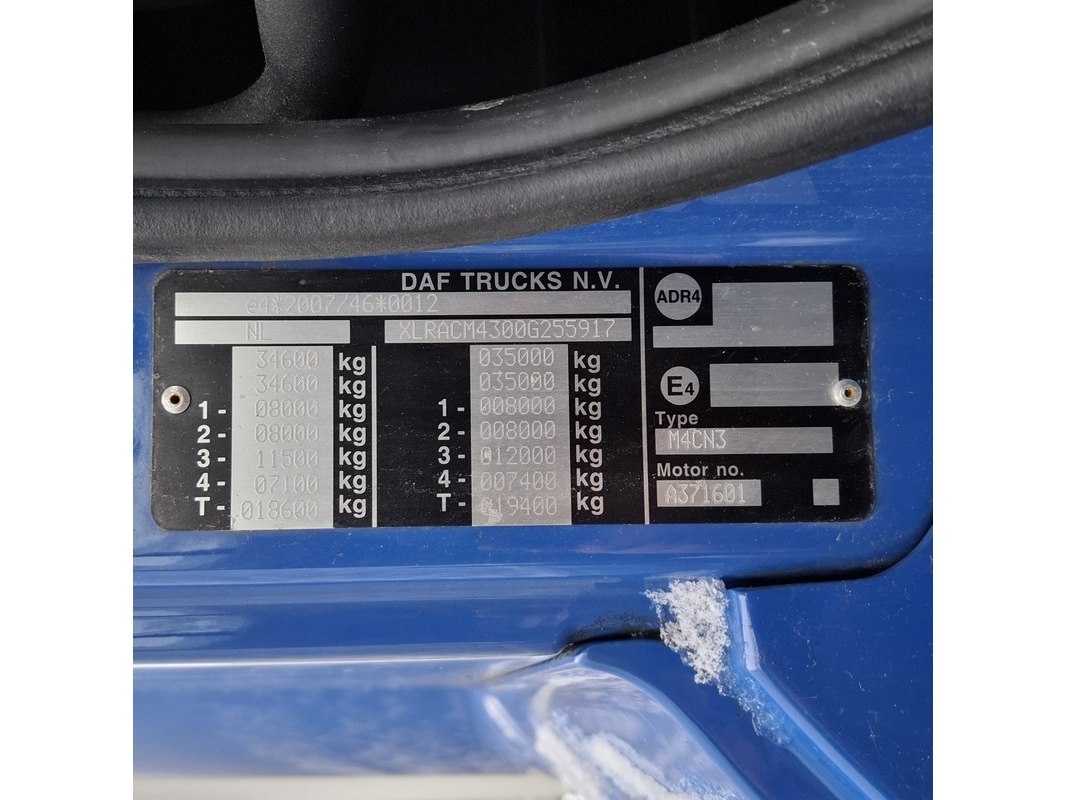 Merk: DAF Product: Vrachtwagen BouwJaar: 2019 Conditie: gebruikt Specificaties: Kenteken: 93-BNK-7 Eerste toelating nationaal: 06-06-2019 APK vervaldatum: 08-09-2025 Brandstof: Diesel Afgelezen tellerstand: 311.628km Transmissie: Automaat Aantal sleutels: 2 VIN nummer: XLRAEM3700G057917 Start: Ja, met booster i.v.m. lage accuspanning Opties en uitrusting Elektrische ramen Elektrische spiegels Cruise control Airconditioning Laadklep Waargenomen gebreken Diverse beschadigingen rondom Storingen zichtbaar op display Rechterband van 2e vooras lek en/of defect Video https://youtu.be/EZHY8dazVpo