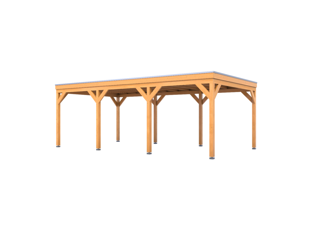 Merk: Verando Product: Douglas overkapping 402x735cm Materiaal: Douglas hout Conditie: nieuw Specificaties: De Douglas overkapping Orgin wordt geleverd als compleet bouwpakket, waarbij alle onderdelen op maat zijn gezaagd. Bij het pakket zit een duidelijke stap-voor-stap handleiding, evenals de benodigde schroeven voor de montage. Alle onderdelen zijn gemaakt uit fijnbezaagd Douglas hout van West-Europese kwaliteit. De constructie bestaat uit; palen van 12 x 12 cm, ringbalk van 5 x 15 cm, balklaag van 5 x 15 cm, dakbeschot van 1,8 cm dik, schoren van 5 x 15 cm en boeiboorden van 2,2 x 20 cm. De overkapping is eenvoudig op te bouwen en daardoor geschikt voor doe-het-zelvers. De doorloophoogte is 224 cm en de totale hoogte is 260 cm. De overige maatvoering is terug te vinden op de 2e, 3e en 4e foto. De 5e en 6e foto geven een indruk van de houtkwaliteit.