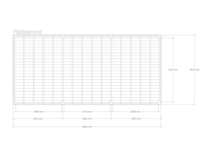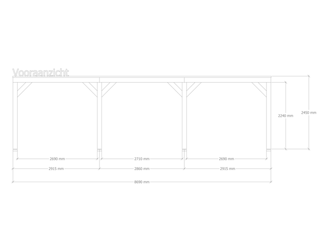 Merk: Verando Product: Douglas overkapping 407x869cm Materiaal: Douglas hout Conditie: nieuw Specificaties: De Douglas overkapping Living wordt geleverd als compleet bouwpakket, waarbij alle onderdelen op maat zijn gezaagd. Bij het pakket zit een duidelijke stap-voor-stap handleiding, evenals de benodigde schroeven voor de montage. Alle onderdelen zijn gemaakt uit fijnbezaagd Douglas hout van West-Europese kwaliteit. De constructie bestaat uit; palen van 15 x 15 cm, ringbalk van 5 x 20 cm, balklaag van 5 x 15 cm, dakbeschot van 1,8 cm dik en schoren van 5 x 15 cm. De overkapping is eenvoudig op te bouwen en daardoor geschikt voor doe-het-zelvers. De doorloophoogte is 224 cm en de totale hoogte is 245 cm. De overige maatvoering is terug te vinden op de 2e, 3e en 4e foto. De 5e en 6e foto geven een indruk van de houtkwaliteit.