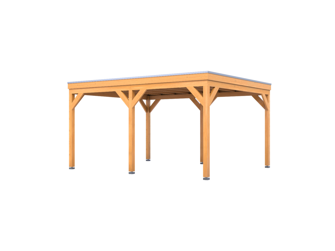 Merk: Verando Product: Douglas overkapping 402x492cm Materiaal: Douglas hout Conditie: nieuw Specificaties: De Douglas overkapping Orgin wordt geleverd als compleet bouwpakket, waarbij alle onderdelen op maat zijn gezaagd. Bij het pakket zit een duidelijke stap-voor-stap handleiding, evenals de benodigde schroeven voor de montage. Alle onderdelen zijn gemaakt uit fijnbezaagd Douglas hout van West-Europese kwaliteit. De constructie bestaat uit; palen van 12 x 12 cm, ringbalk van 5 x 15 cm, balklaag van 5 x 15 cm, dakbeschot van 1,8 cm dik, schoren van 5 x 15 cm en boeiboorden van 2,2 x 20 cm. De overkapping is eenvoudig op te bouwen en daardoor geschikt voor doe-het-zelvers. De doorloophoogte is 224 cm en de totale hoogte is 260 cm. De overige maatvoering is terug te vinden op de 2e, 3e en 4e foto. De 5e en 6e foto geven een indruk van de houtkwaliteit.