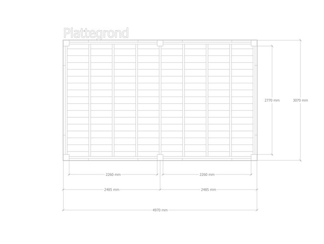 Merk: Verando Product: Douglas overkapping 307x497cm + wanden blank Materiaal: Douglas hout Conditie: nieuw Specificaties: De Douglas overkapping Living wordt geleverd als compleet bouwpakket, waarbij alle onderdelen op maat zijn gezaagd. Bij het pakket zit een duidelijke stap-voor-stap handleiding, evenals de benodigde schroeven voor de montage. Alle onderdelen zijn gemaakt uit fijnbezaagd Douglas hout van West-Europese kwaliteit. De constructie bestaat uit; palen van 15 x 15 cm, ringbalk van 5 x 20 cm, balklaag van 5 x 15 cm, dakbeschot van 1,8 cm dik en schoren van 5 x 15 cm. Bij deze overkapping zijn de zij- en achterwand(en) inbegrepen. De wand(en) bestaan uit de benodigde schroeven, Douglas houten regels en Zweeds rabatplanken. Ook voor de wandmontage is een duidelijke montagehandleiding inbegrepen. De overkapping is eenvoudig op te bouwen en daardoor geschikt voor doe-het-zelvers. De doorloophoogte is 224 cm en de totale hoogte is 245 cm. De overige maatvoering is terug te vinden op de 2e, 3e en 4e foto. De 5e en 6e foto geven een indruk van de houtkwaliteit.