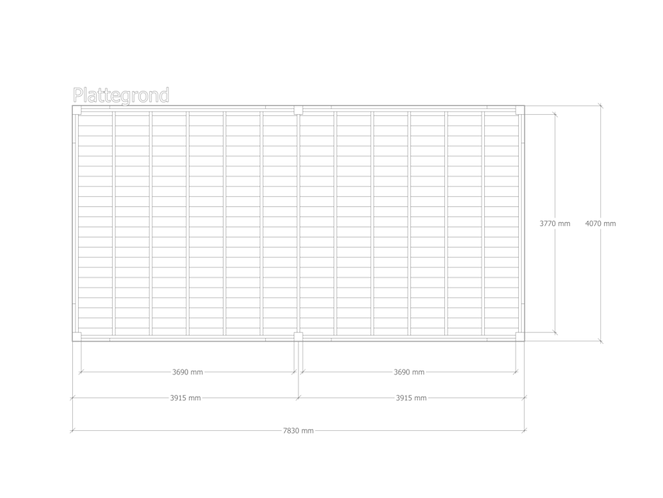 Merk: Verando Product: Douglas overkapping 407x783cm Materiaal: Douglas hout Conditie: nieuw Specificaties: De Douglas overkapping Living wordt geleverd als compleet bouwpakket, waarbij alle onderdelen op maat zijn gezaagd. Bij het pakket zit een duidelijke stap-voor-stap handleiding, evenals de benodigde schroeven voor de montage. Alle onderdelen zijn gemaakt uit fijnbezaagd Douglas hout van West-Europese kwaliteit. De constructie bestaat uit; palen van 15 x 15 cm, ringbalk van 5 x 20 cm, balklaag van 5 x 15 cm, dakbeschot van 1,8 cm dik en schoren van 5 x 15 cm. De overkapping is eenvoudig op te bouwen en daardoor geschikt voor doe-het-zelvers. De doorloophoogte is 224 cm en de totale hoogte is 245 cm. De overige maatvoering is terug te vinden op de 2e, 3e en 4e foto. De 5e en 6e foto geven een indruk van de houtkwaliteit.