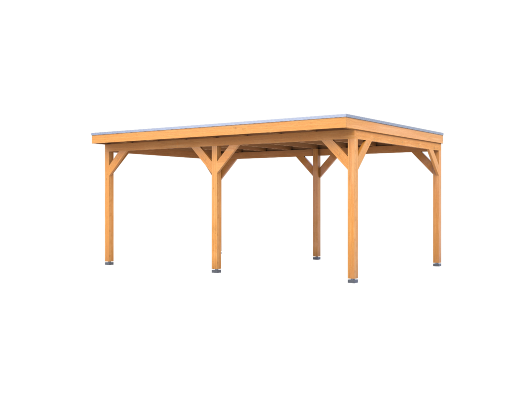Merk: Verando Product: Douglas overkapping 402x578cm Materiaal: Douglas hout Conditie: nieuw Specificaties: De Douglas overkapping Pure wordt geleverd als compleet bouwpakket, waarbij alle onderdelen op maat zijn gezaagd. Bij het pakket zit een duidelijke stap-voor-stap handleiding, evenals de benodigde schroeven voor de montage. Alle onderdelen zijn gemaakt uit fijnbezaagd Douglas hout van West-Europese kwaliteit. De constructie bestaat uit; palen van 12 x 12 cm, ringbalk van 5 x 15 cm, balklaag van 5 x 15 cm, dakbeschot van 1,8 cm dik, schoren van 5 x 15 cm en boeiboorden van 2,2 x 20 cm. De overkapping is eenvoudig op te bouwen en daardoor geschikt voor doe-het-zelvers. De doorloophoogte is 224 cm en de totale hoogte is 260 cm. De overige maatvoering is terug te vinden op de 2e, 3e en 4e foto. De 5e en 6e foto geven een indruk van de houtkwaliteit.