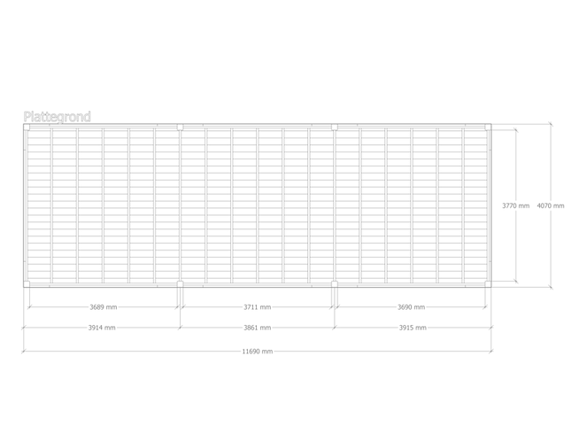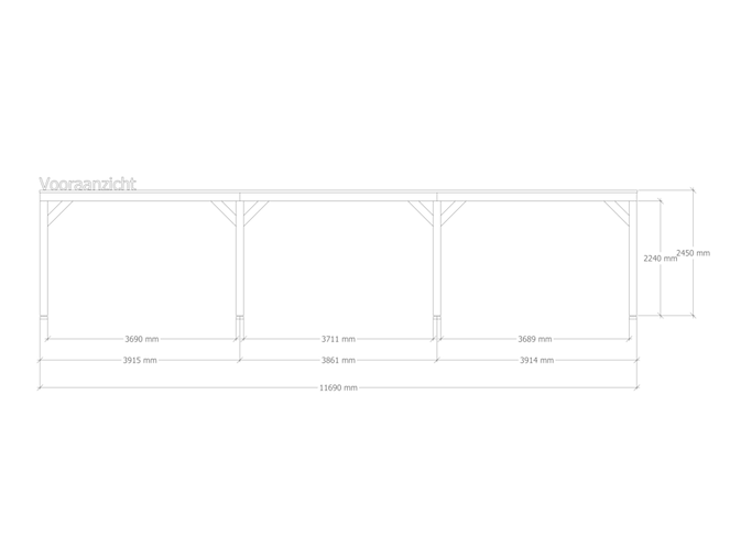 Merk: Verando Product: Douglas overkapping 407x1169cm + wanden zwart Materiaal: Douglas hout Conditie: nieuw Specificaties: De Douglas overkapping Living wordt geleverd als compleet bouwpakket, waarbij alle onderdelen op maat zijn gezaagd. Bij het pakket zit een duidelijke stap-voor-stap handleiding, evenals de benodigde schroeven voor de montage. Alle onderdelen zijn gemaakt uit fijnbezaagd Douglas hout van West-Europese kwaliteit. De constructie bestaat uit; palen van 15 x 15 cm, ringbalk van 5 x 20 cm, balklaag van 5 x 15 cm, dakbeschot van 1,8 cm dik en schoren van 5 x 15 cm. Bij deze overkapping zijn de zij- en achterwand(en) inbegrepen. De wand(en) bestaan uit de benodigde schroeven, Douglas houten regels en zwart gedompelde Zweeds rabatplanken. Ook voor de wandmontage is een duidelijke montagehandleiding inbegrepen. De overkapping is eenvoudig op te bouwen en daardoor geschikt voor doe-het-zelvers. De doorloophoogte is 224 cm en de totale hoogte is 245 cm. De overige maatvoering is terug te vinden op de 2e, 3e en 4e foto. De 5e en 6e foto geven een indruk van de houtkwaliteit.