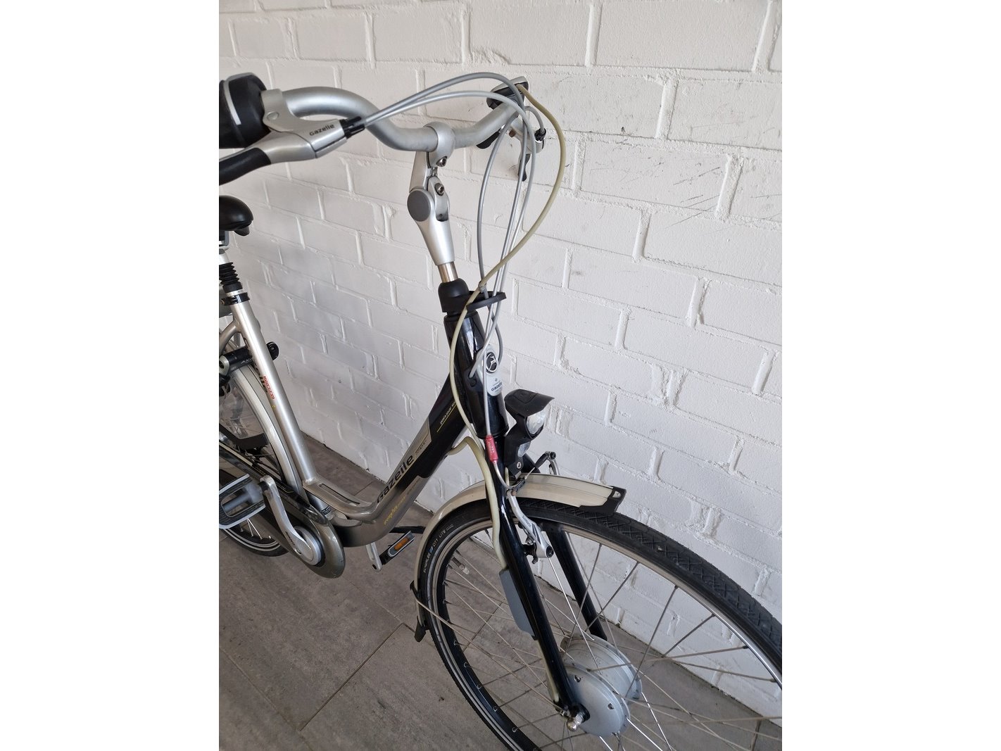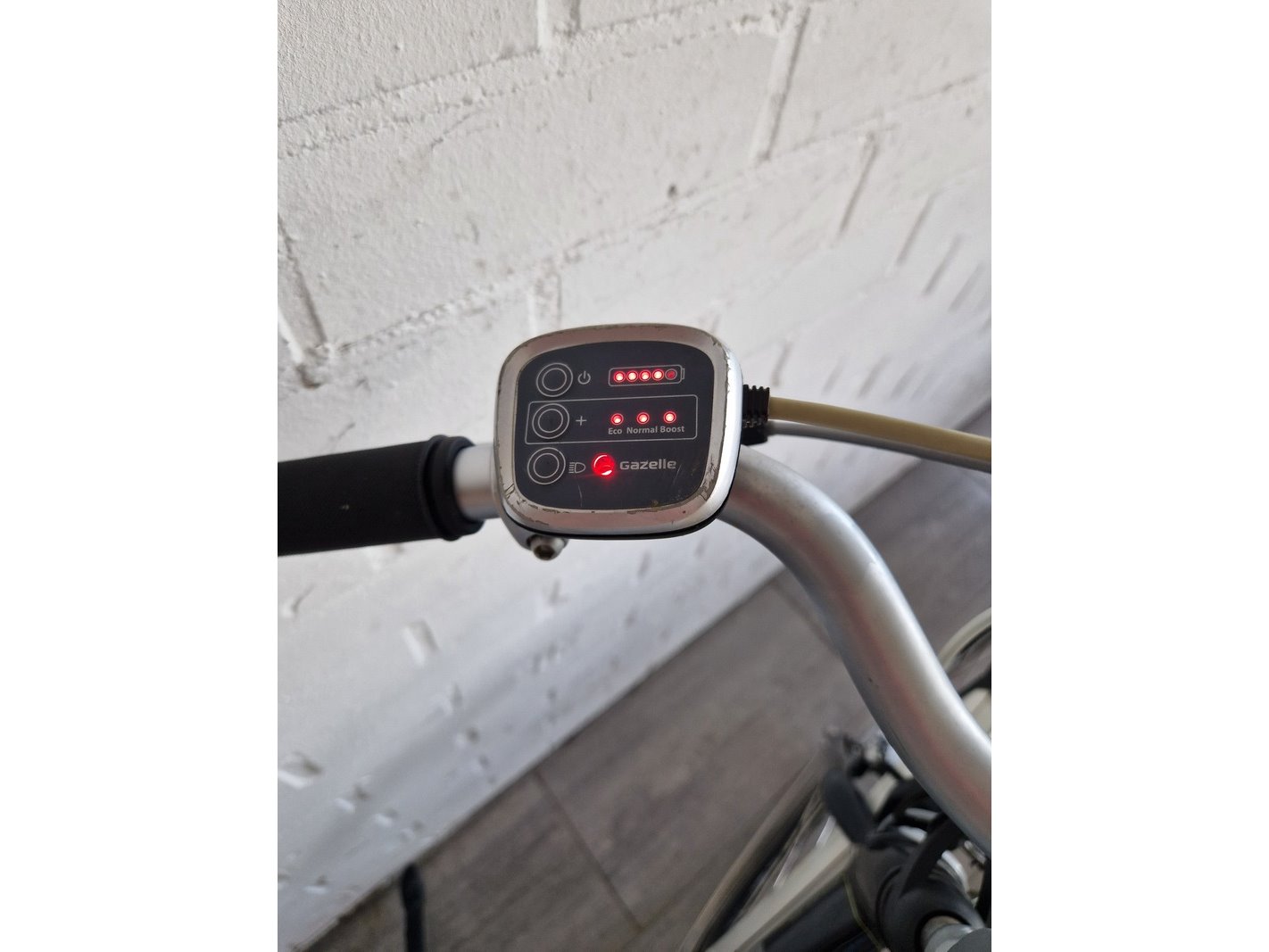 Merk: Gazelle Product: Elektrische fiets Kleur: Grijs / Chroom Materiaal: Aluminium Afmeting: 28 inch Conditie: Gebruikt Specificaties: - Werkend weggezet - Inclusief lader