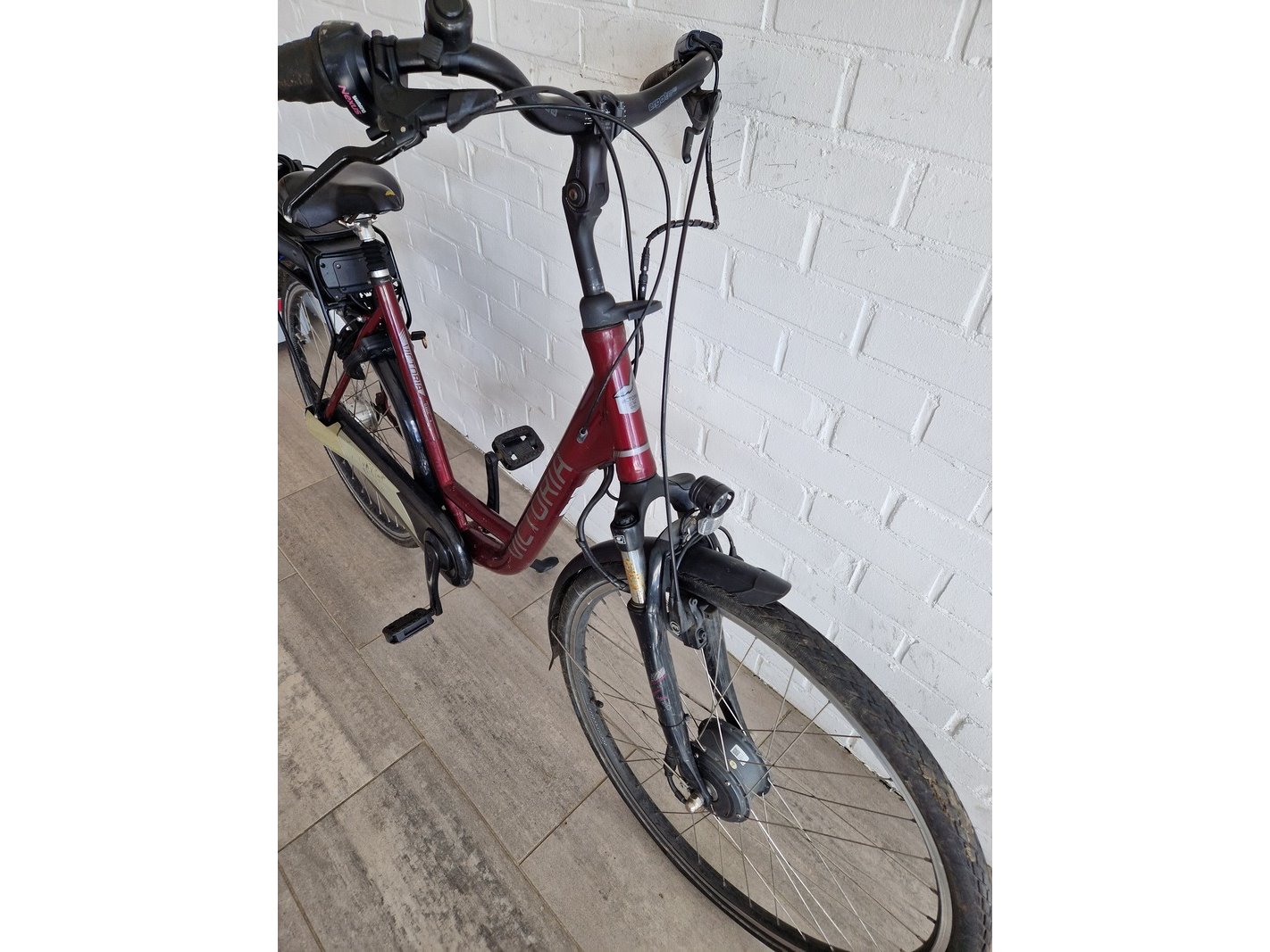 Merk: Victoria Product: Elektrische fiets Kleur: Rood Materiaal: Aluminium Afmeting: 28 inch Conditie: Gebruikt Specificaties: Inclusief lader